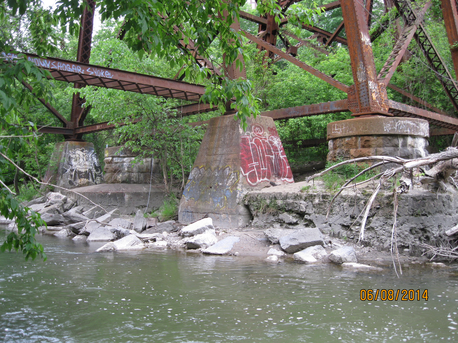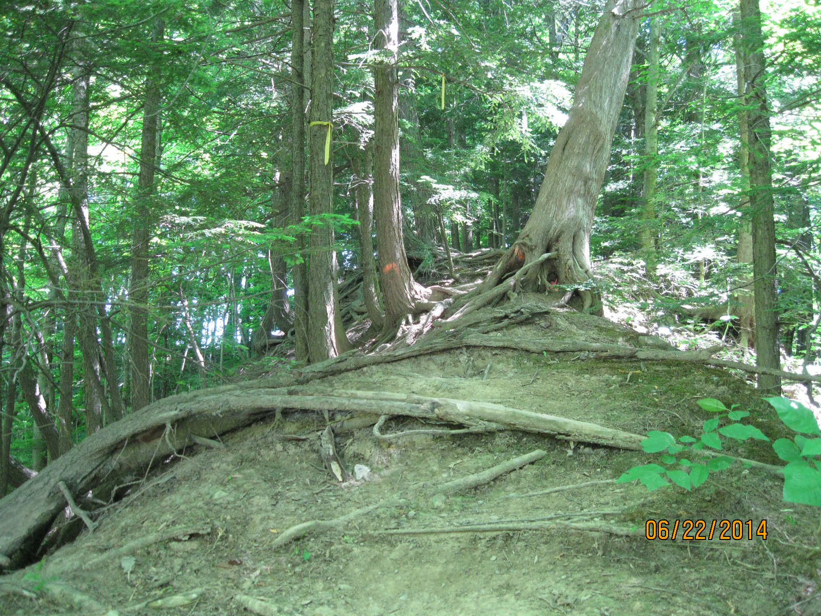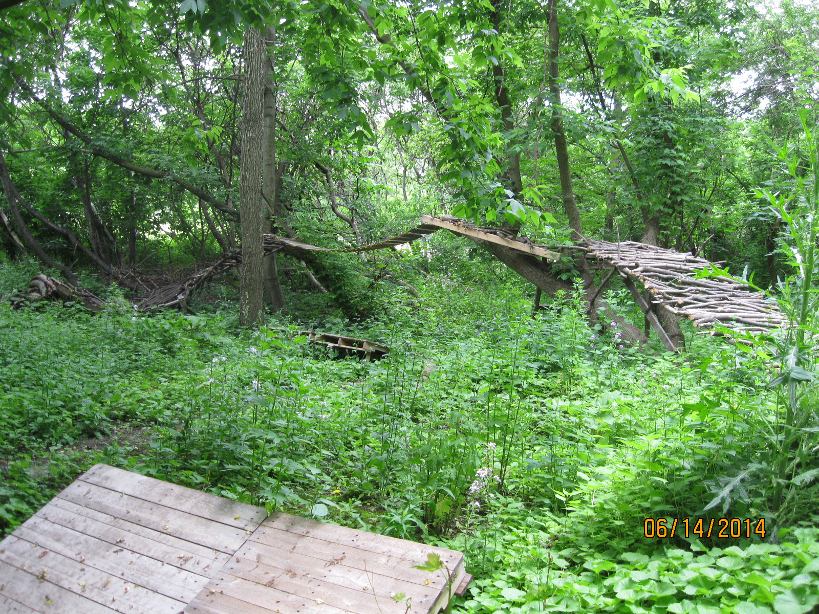 If you return to the main trail near the pine trees that mark the old lane way you can make your way further north in the park. Soon you will come to this old set of stone stairs. Even with some missing, there is still over 100 steps on the hill side. These will take you back up to the back yard of Riverwood.
