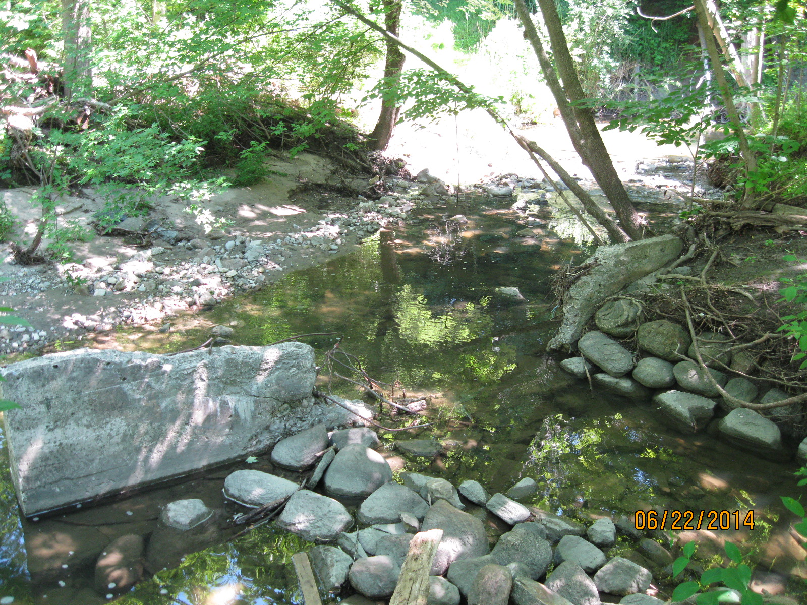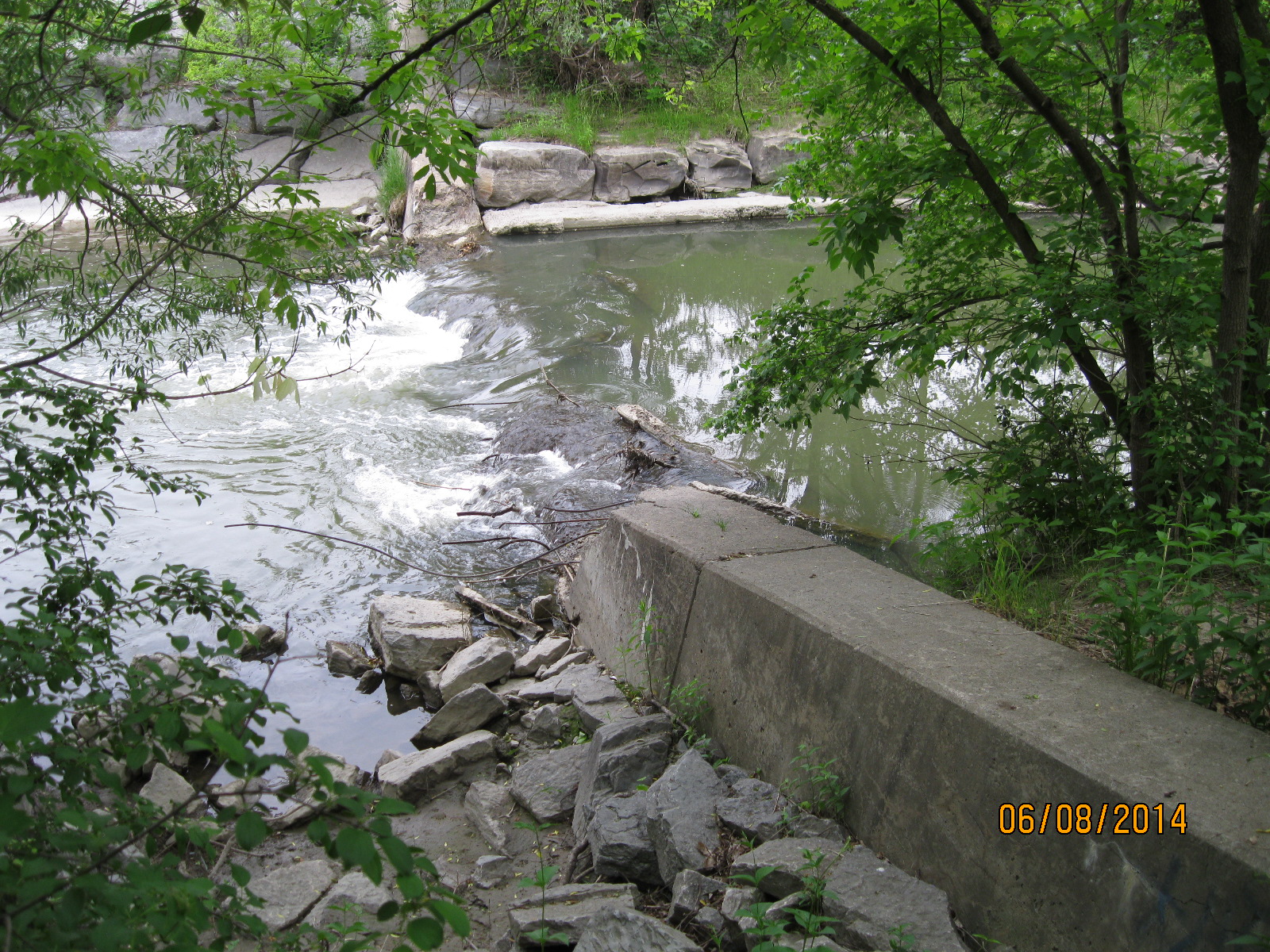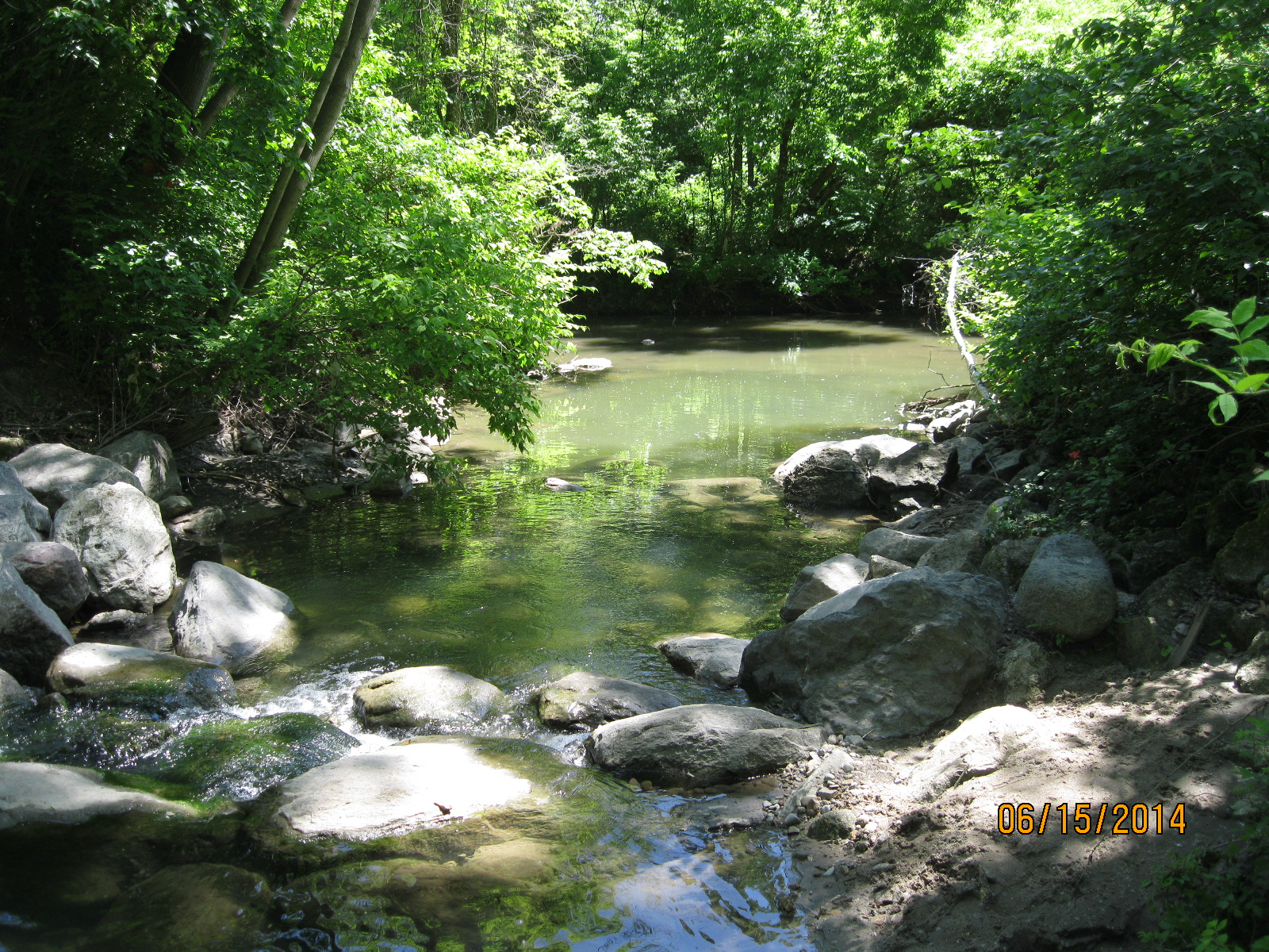 Riverwood sits on a point of land between two small ravines. Chappell ravine on the north side and on the south, MacEwan ravine. When the house was built a swimming pool was built on the MacEwan ravine. The sides and front of the pool are lined with concrete and a set of stairs is built into the south corner. When it was built it was the first swimming pool in what is now the city of Mississauga. It was cold and hard to keep clean so it was eventually abandoned and a new pool was built on the front lawn.