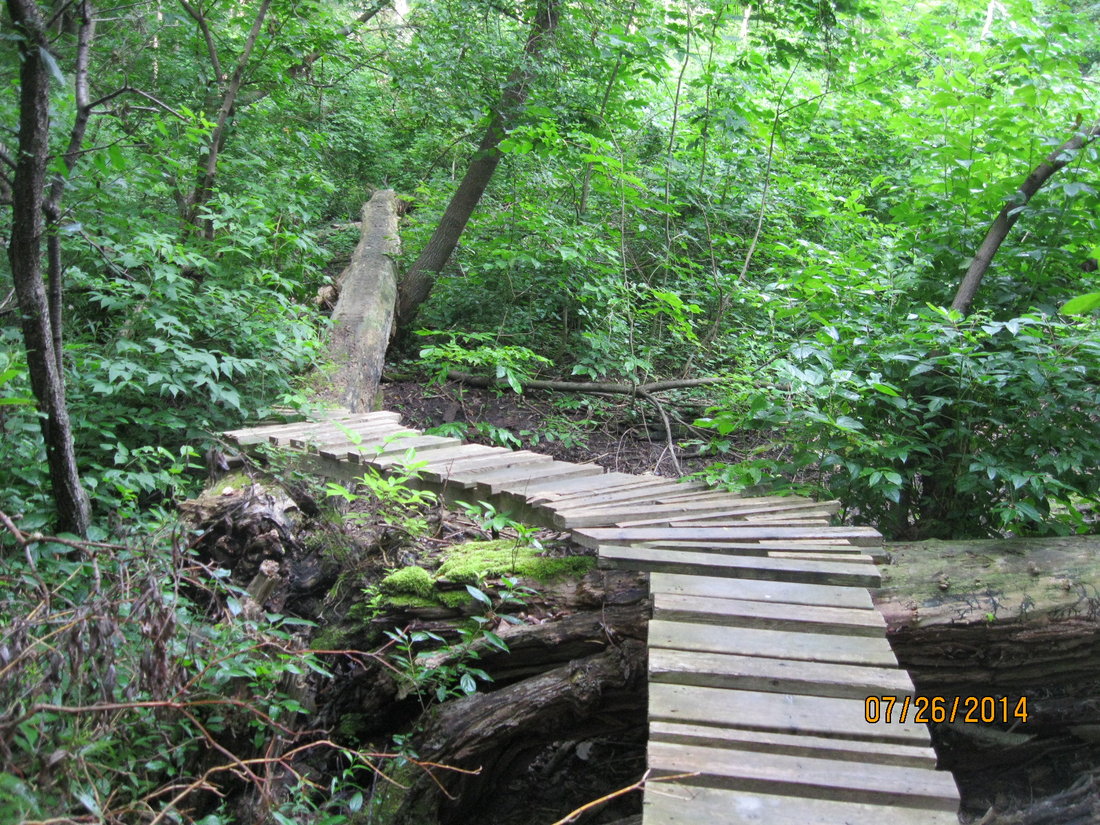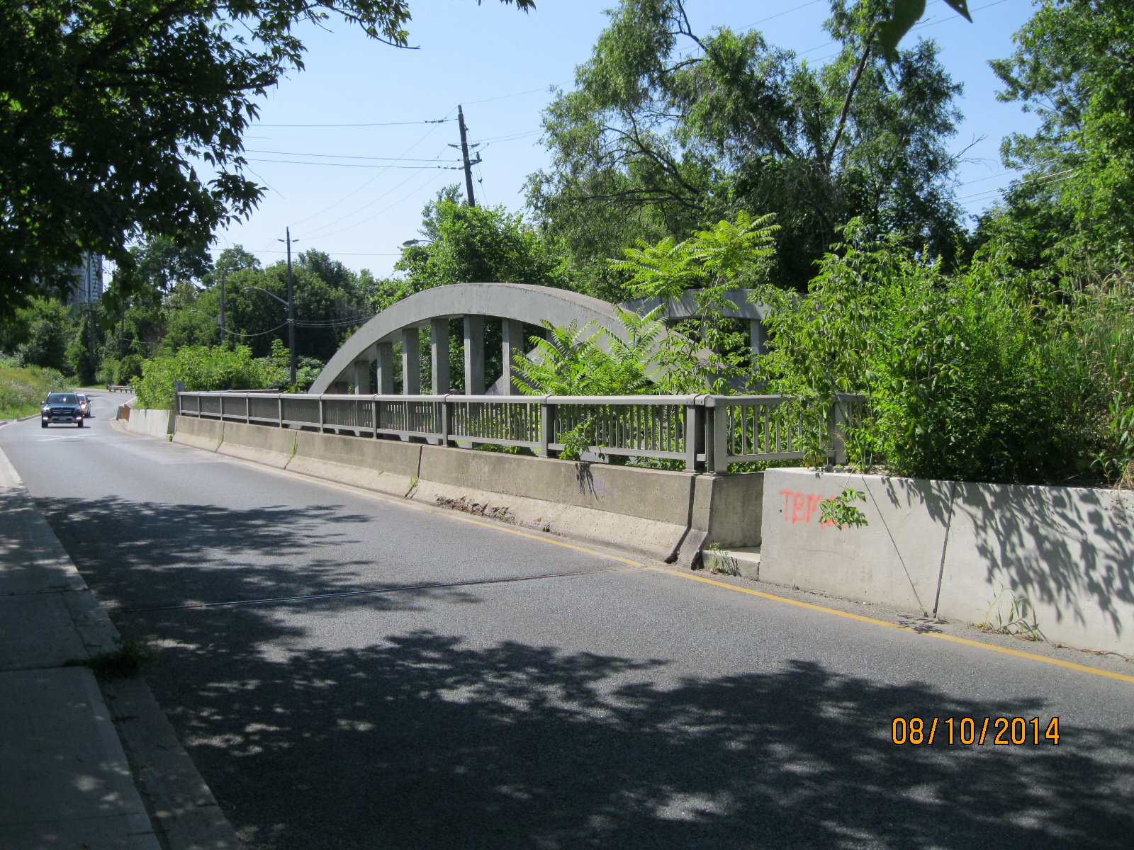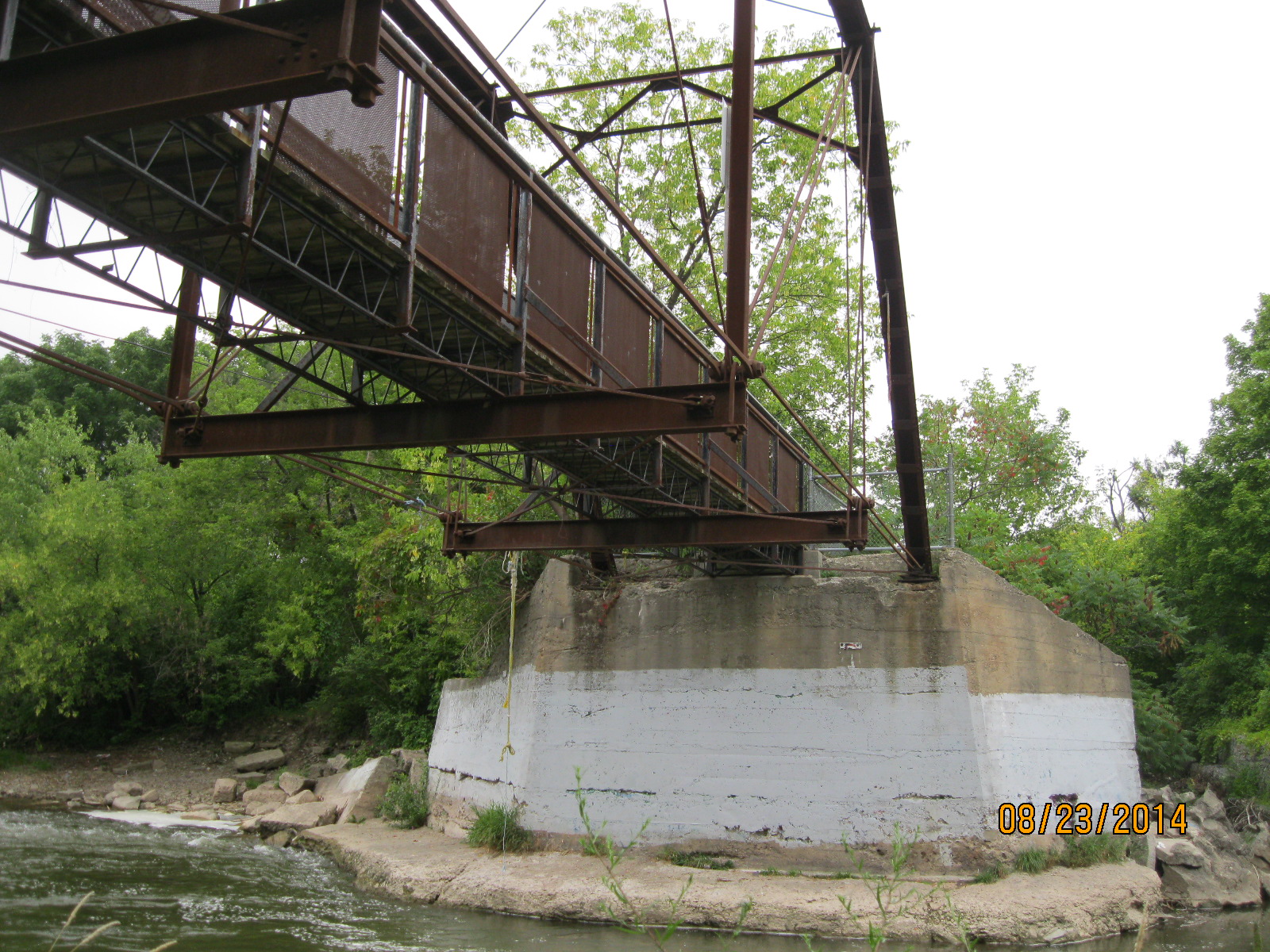 The Barbertown bridge was built in 1898 to carry workers from about 40 cottages that were built along Base Line (now Eglinton Road). The staff of the mill reached 200 at one point and used this bridge to access the cottages on the other side of the river along Barbertown Road. The bridge originally carried a roadway as wide as the cross beams on the bottom. A narrower foot bridge has been installed for modern pedestrian traffic.