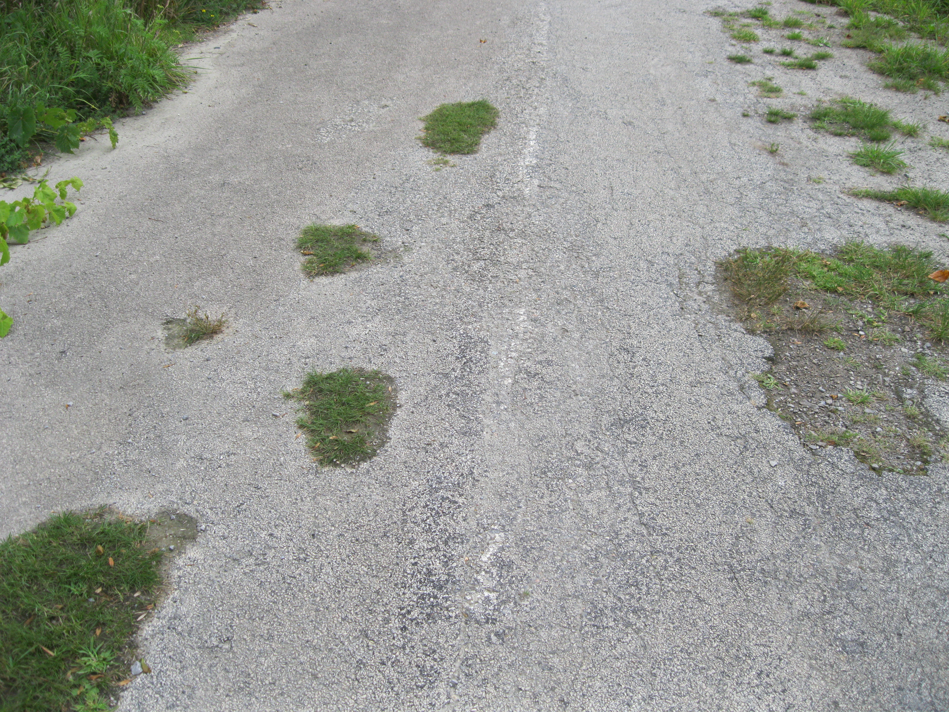 Along the way we noticed that there was a white line on the pathway. Walking trails normally don’t have divider lines and so we suspected that this may have been used as a road at one time. A few minutes later the roadway was lined with the remnants of a old parking lot on either side of the road.