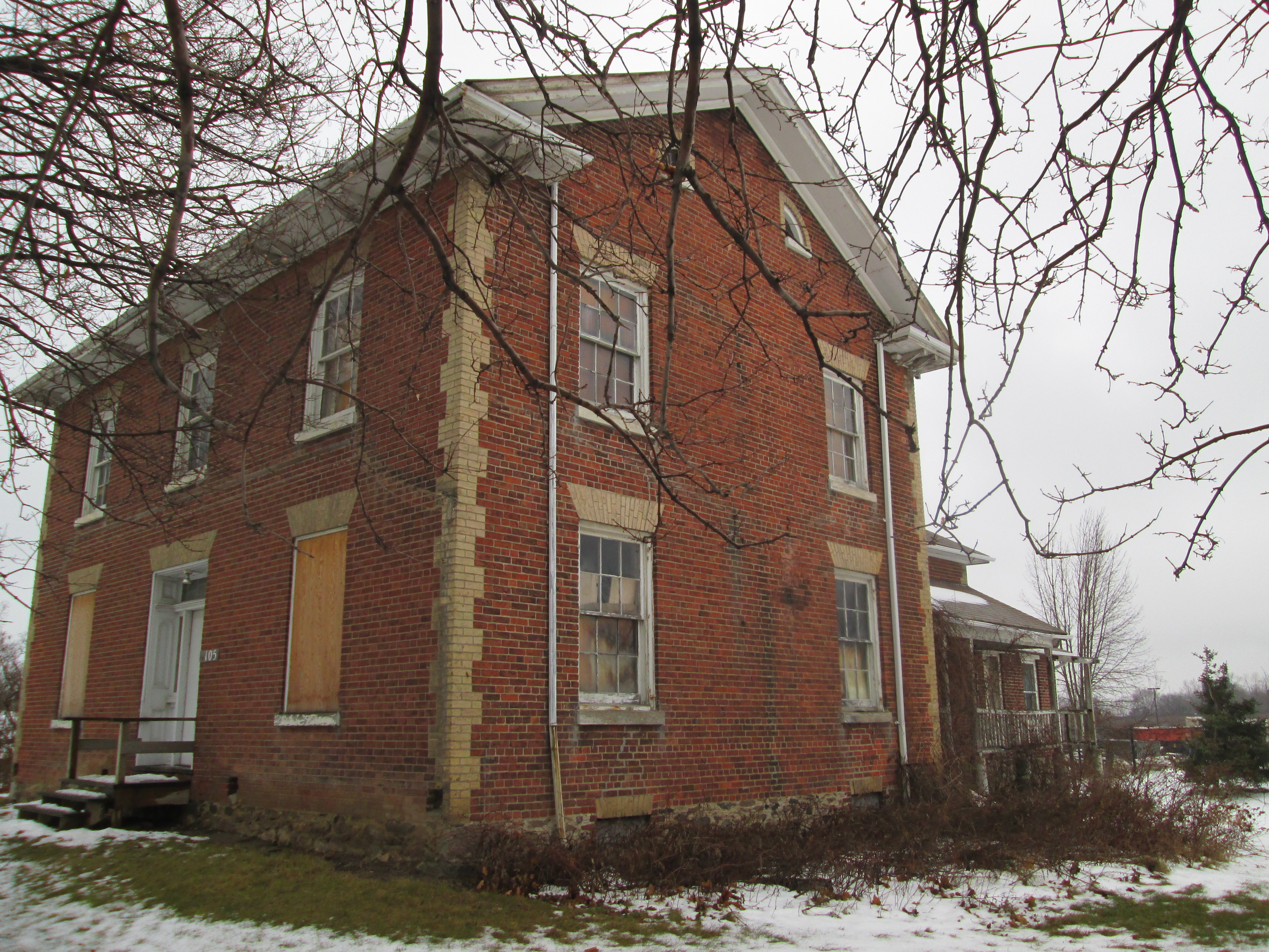 Just two degrees with a biting wind. Not a great day for moving but my brother didn’t get to pick the weather. He had been living in the former town of Dixie on property that once belonged to Joseph Silverthorne who was the founder of the town. Joseph’s house, known as Cherry Hill house, was featured during the exploration of Summerville. A break from moving is a great opportunity to explore and so we set out for the Dixie Union Chapel. Dixie Union is the oldest surviving union chapel in Canada.