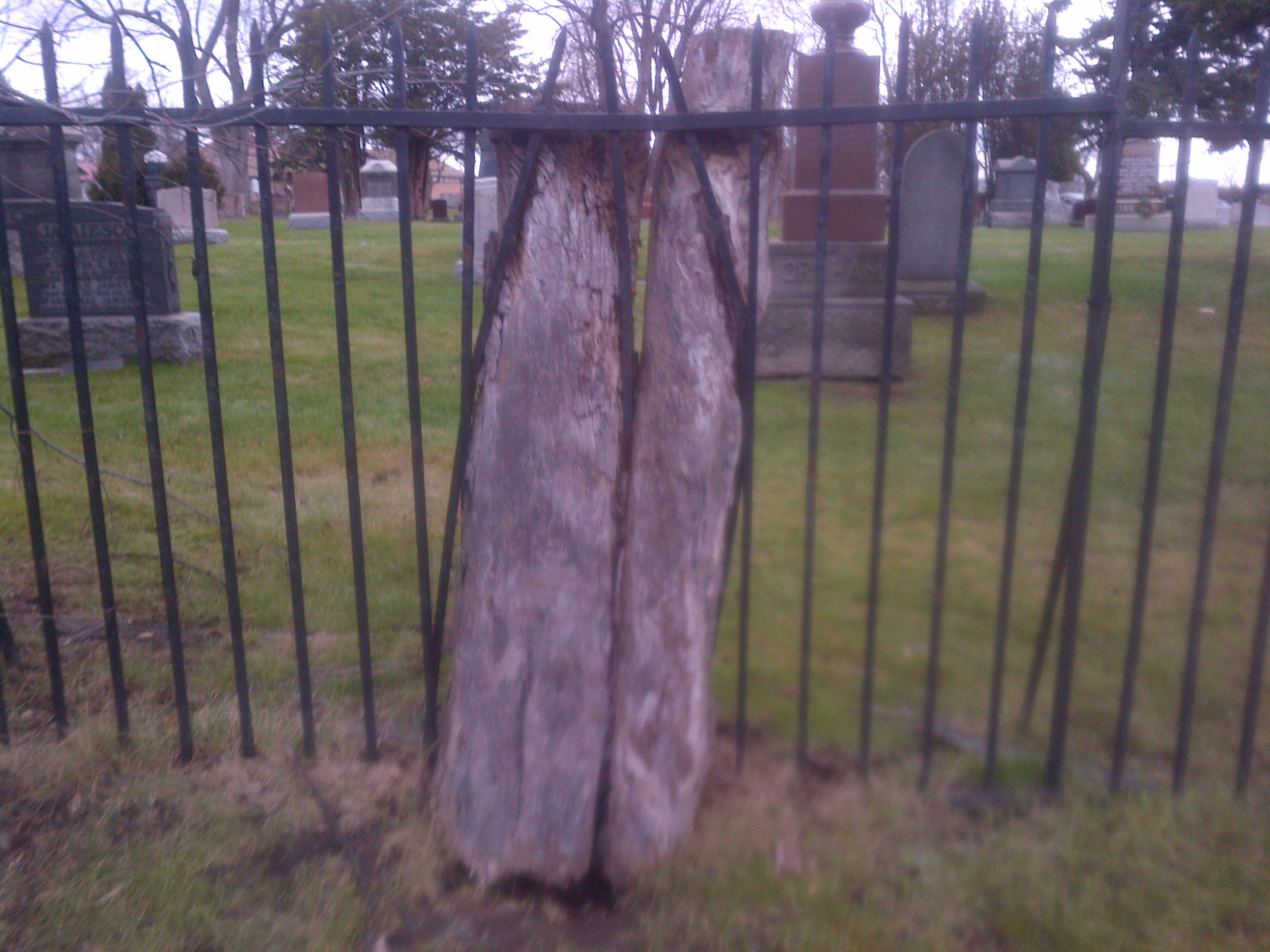 This tree looks like it tried to escape by bending the bars on the fence. Some day the trunks will rot and drop out of the fence leaving people to wonder how the wrought iron got bent like that.