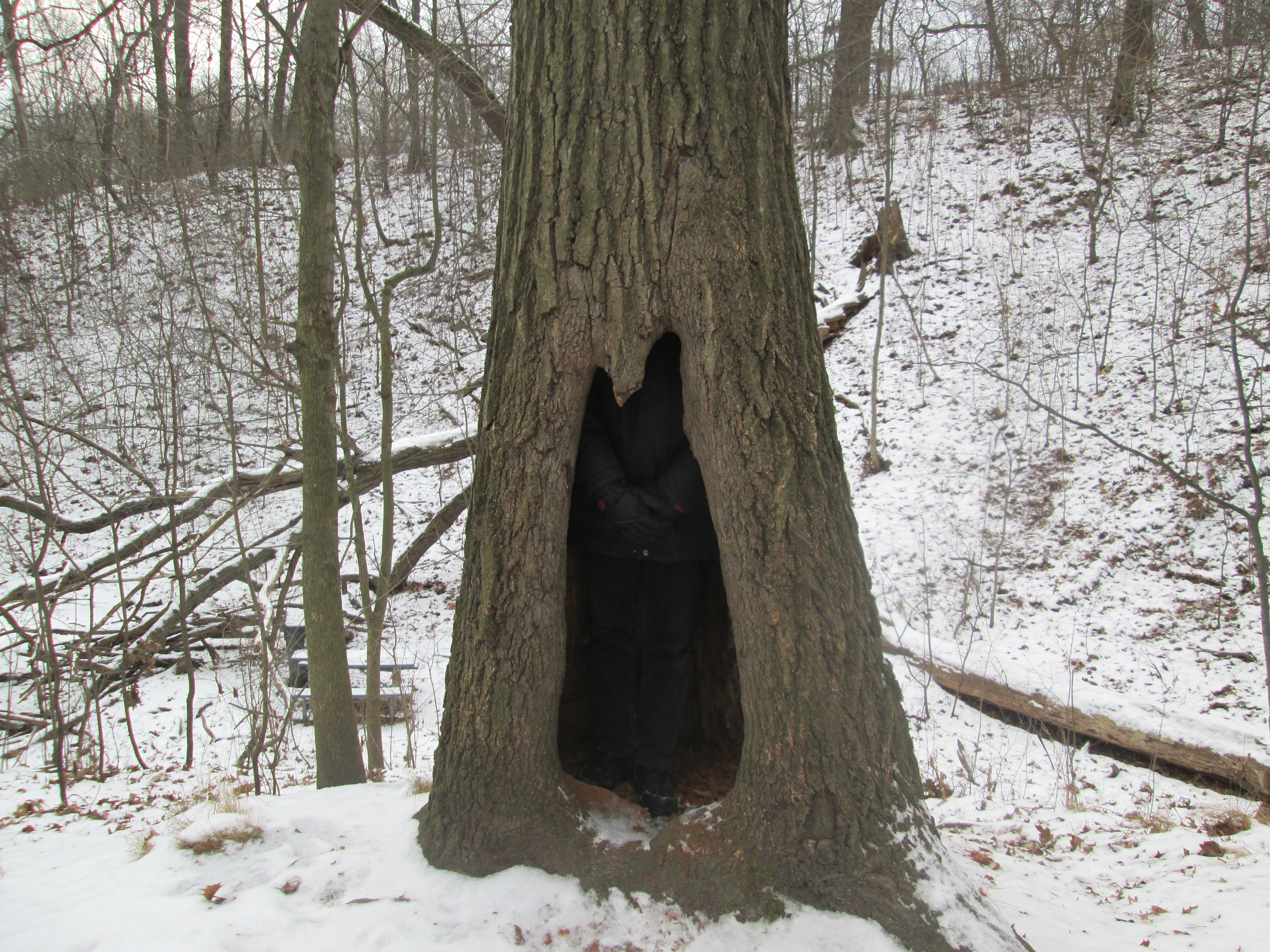 As you enter the Adamson Property there are two old tree stumps that have been carved with animal figures. One has three squirrels carved into it while the one in the picture below features raccoons.