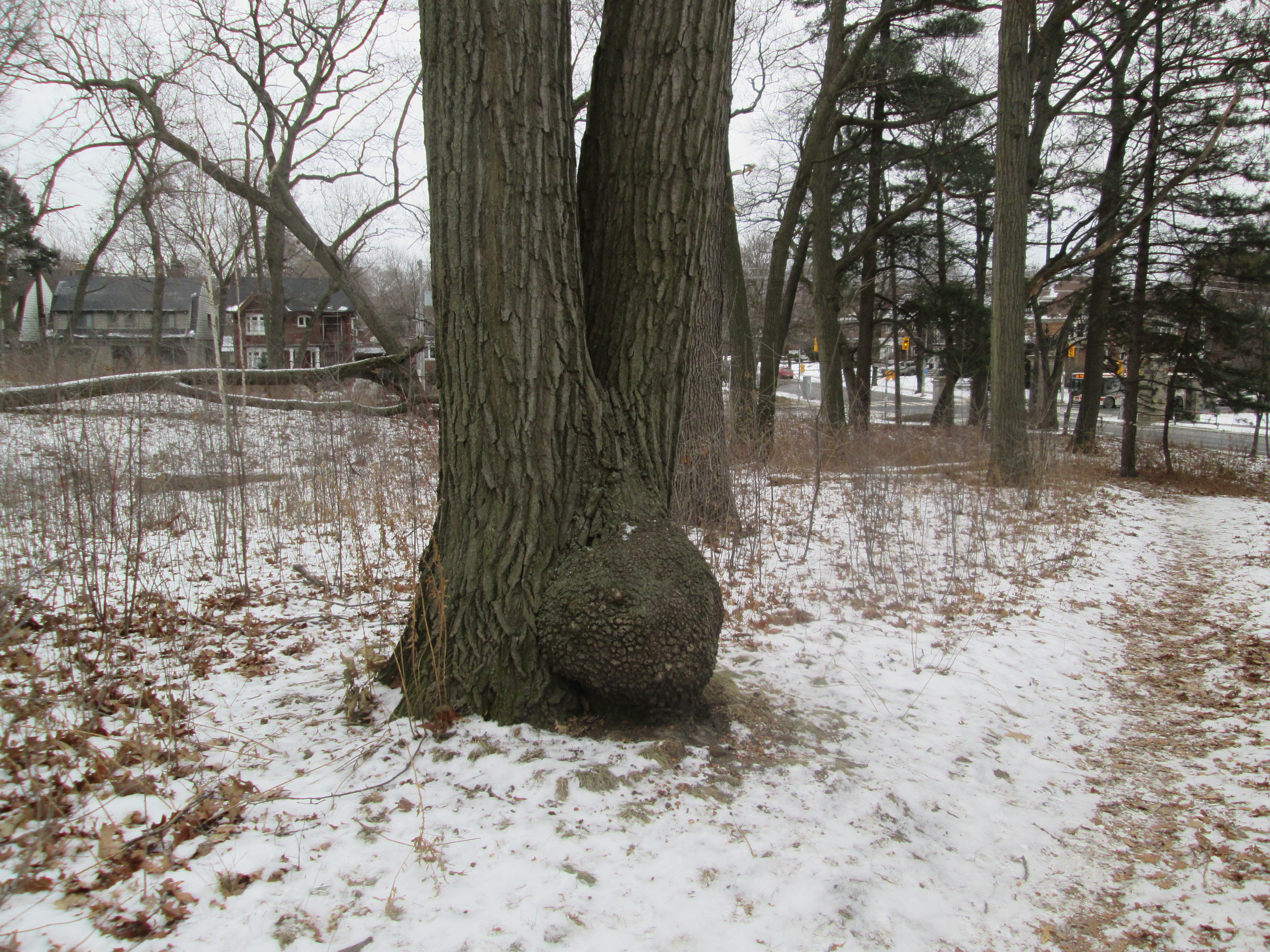 Giant Hogweed is a noxious plant that grows up to 10 feet tall and can cause severe burns and blindness. There are many examples growing along the west bank of the Cooksville Creek. If you hike here in the summer beware as the path leads right through a patch of them.