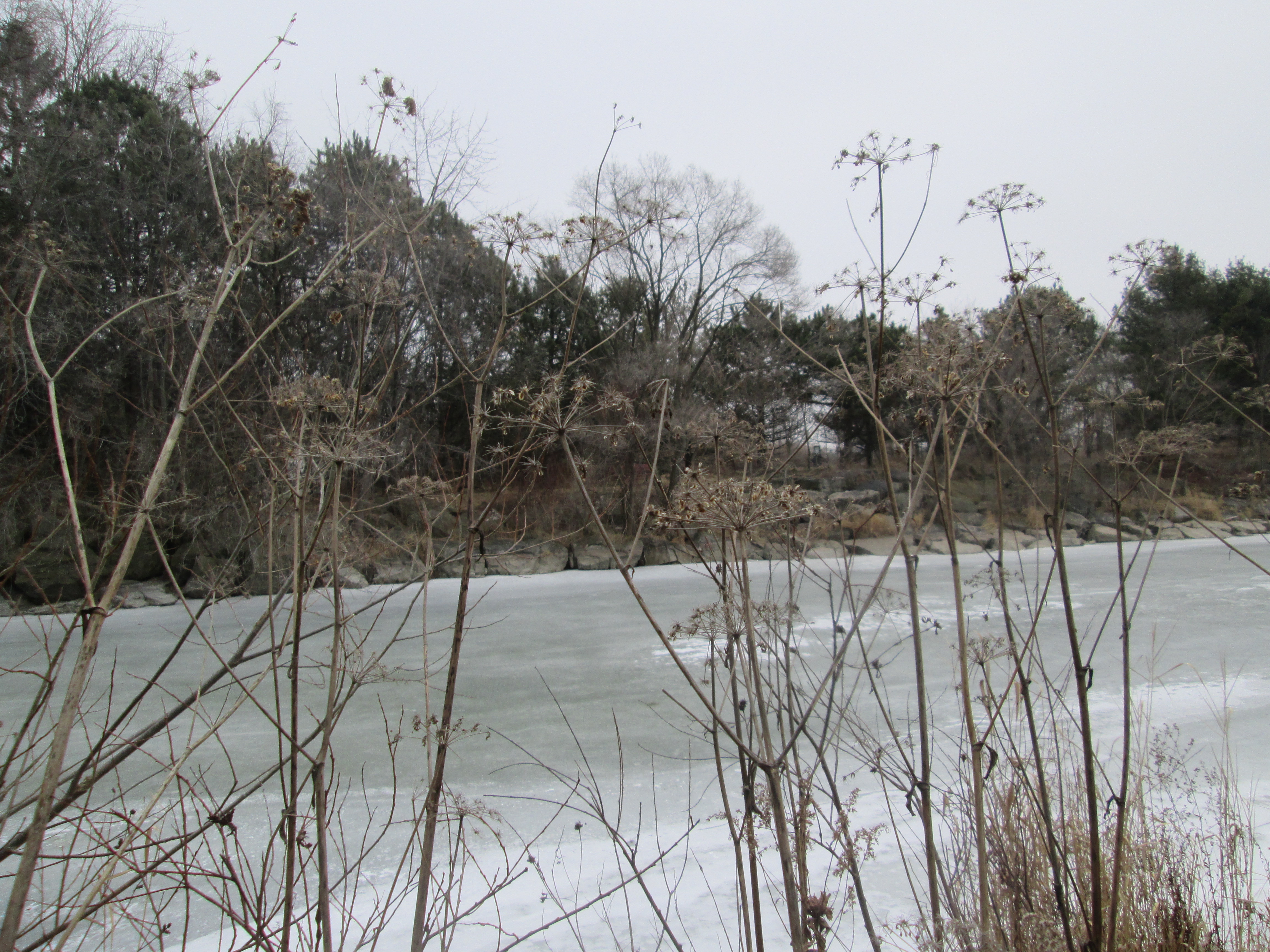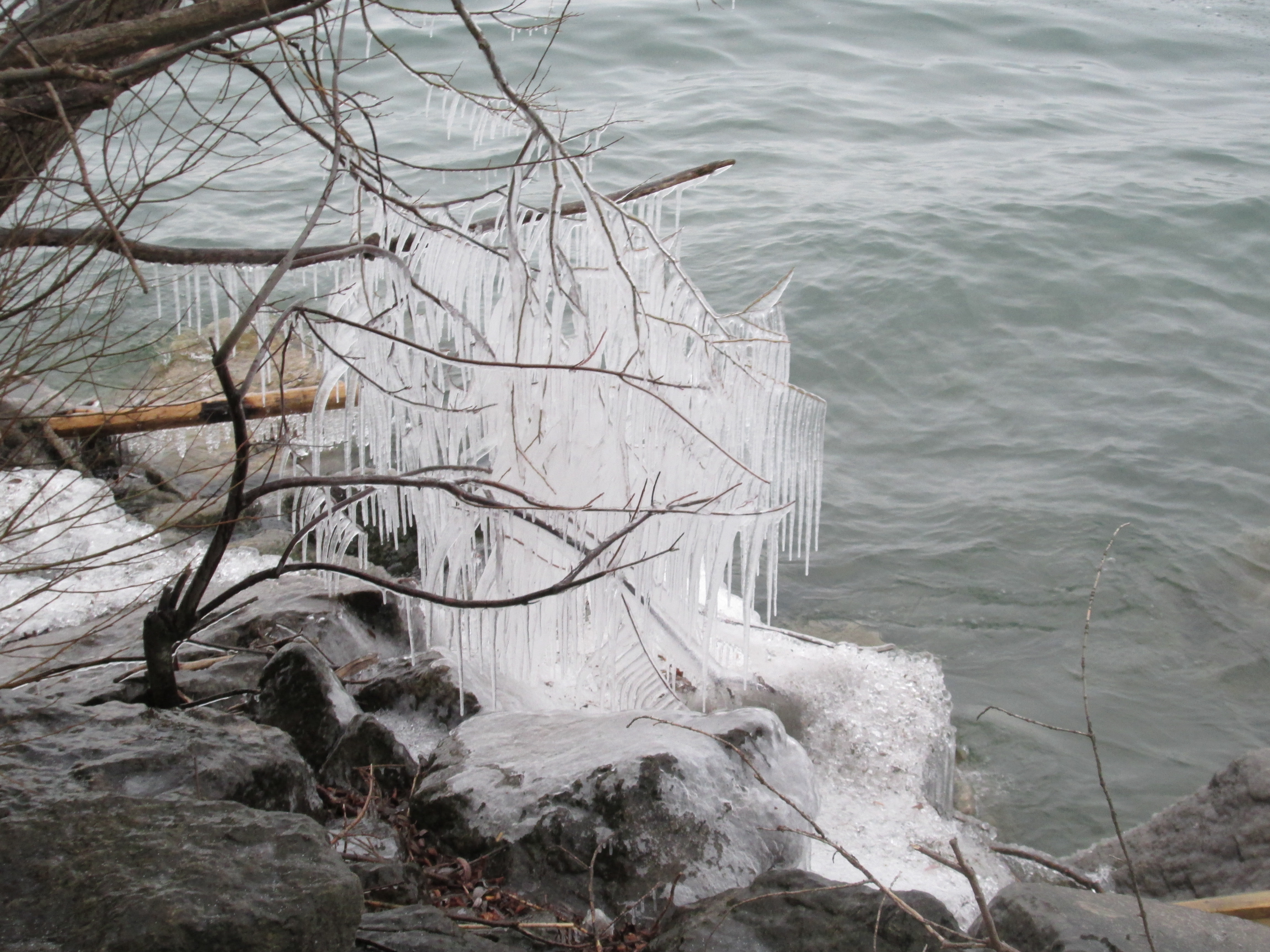 The icy waters of Cooksville Creek have been splashing off the branches along the creek edge creating an elaborate ice sculpture.