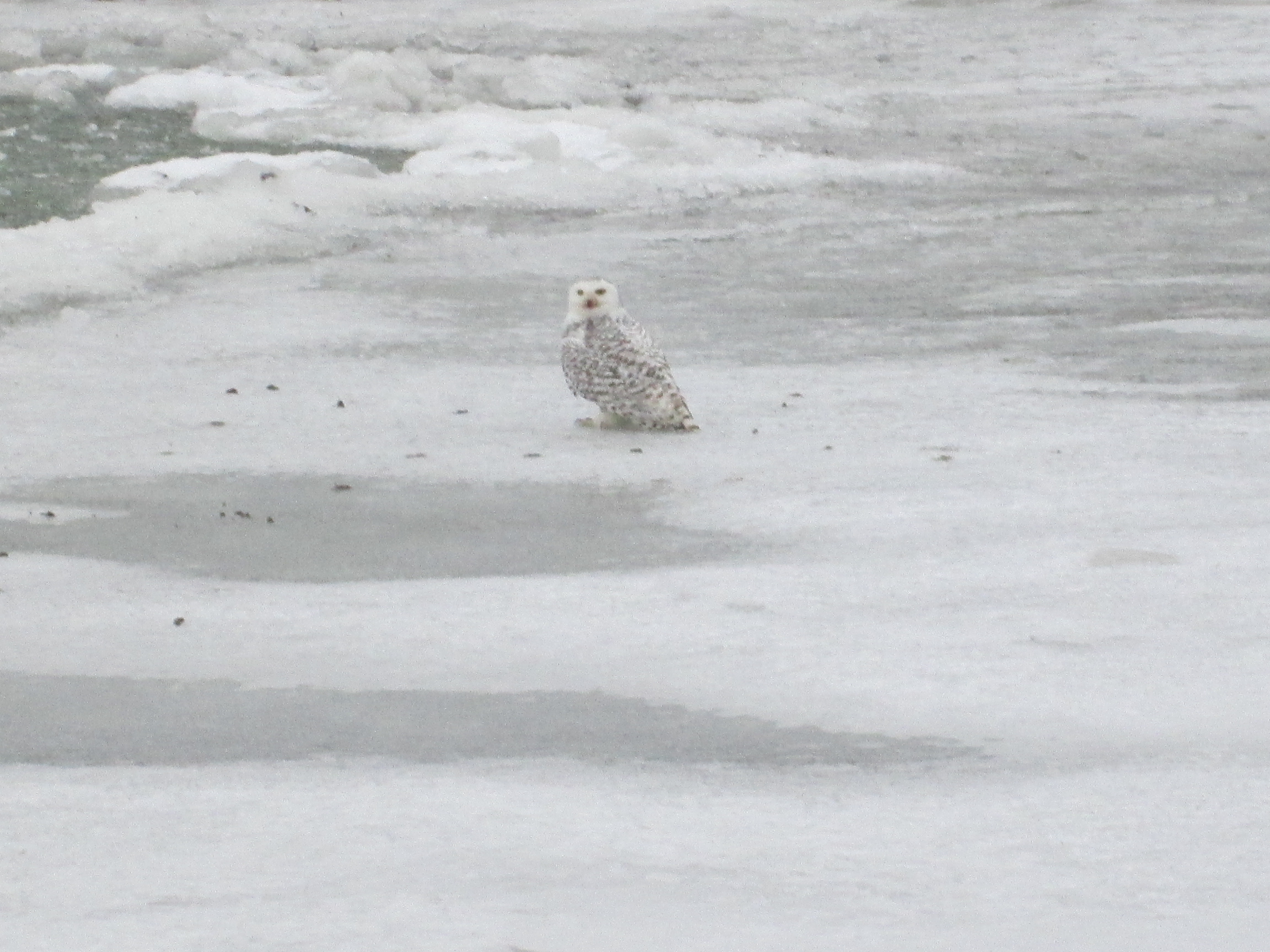 Right at the mouth of Cooksville Creek we spotted a Snowy Owl sitting on the ice. These owls spend their summers north of the Arctic Circle hunting lemmings. Each bird can consume up to 1600 lemmings per year. It is normal for a few Snowy Owls to be seen in Southern Ontario each winter. Last year they appeared in record numbers for the first time in about 15 years. When large numbers of birds are found outside of their normal migration zones it is called an irruption. If it happens a second year in a row, as it has this year, it is termed an echo. We observed this female from both sides of the creek as well as on a rooftop where she flew when we got too close. We also saw what was likely a second one in the park near our cars when we returned at the end of the hike.