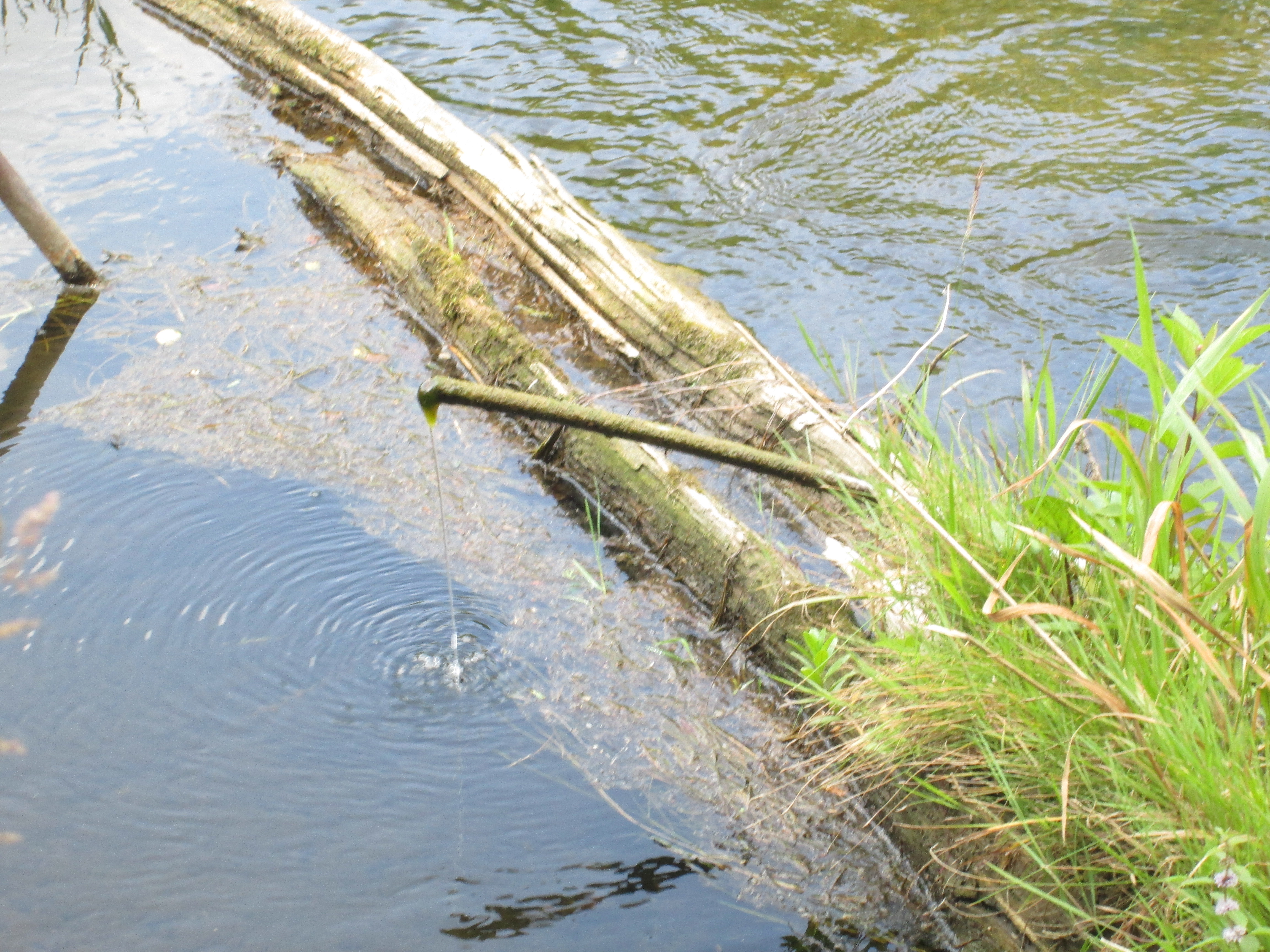 What it led to was a long hike through poisonous wild parsnip patches and through places where the trail was impassible without fishing footwear. One of the more unusual things we have seen is a piece of plastic pipe that was running like a broken tap. The word siphon comes from a Greek word meaning pipe or tube. A siphon causes a liquid to be carried uphill, against gravity, in a continuous self sustaining flow. This pipe is carrying water from the river bottom on one side of the log and siphoning it over the log and back into the river. The mystery is this, how did it get started?