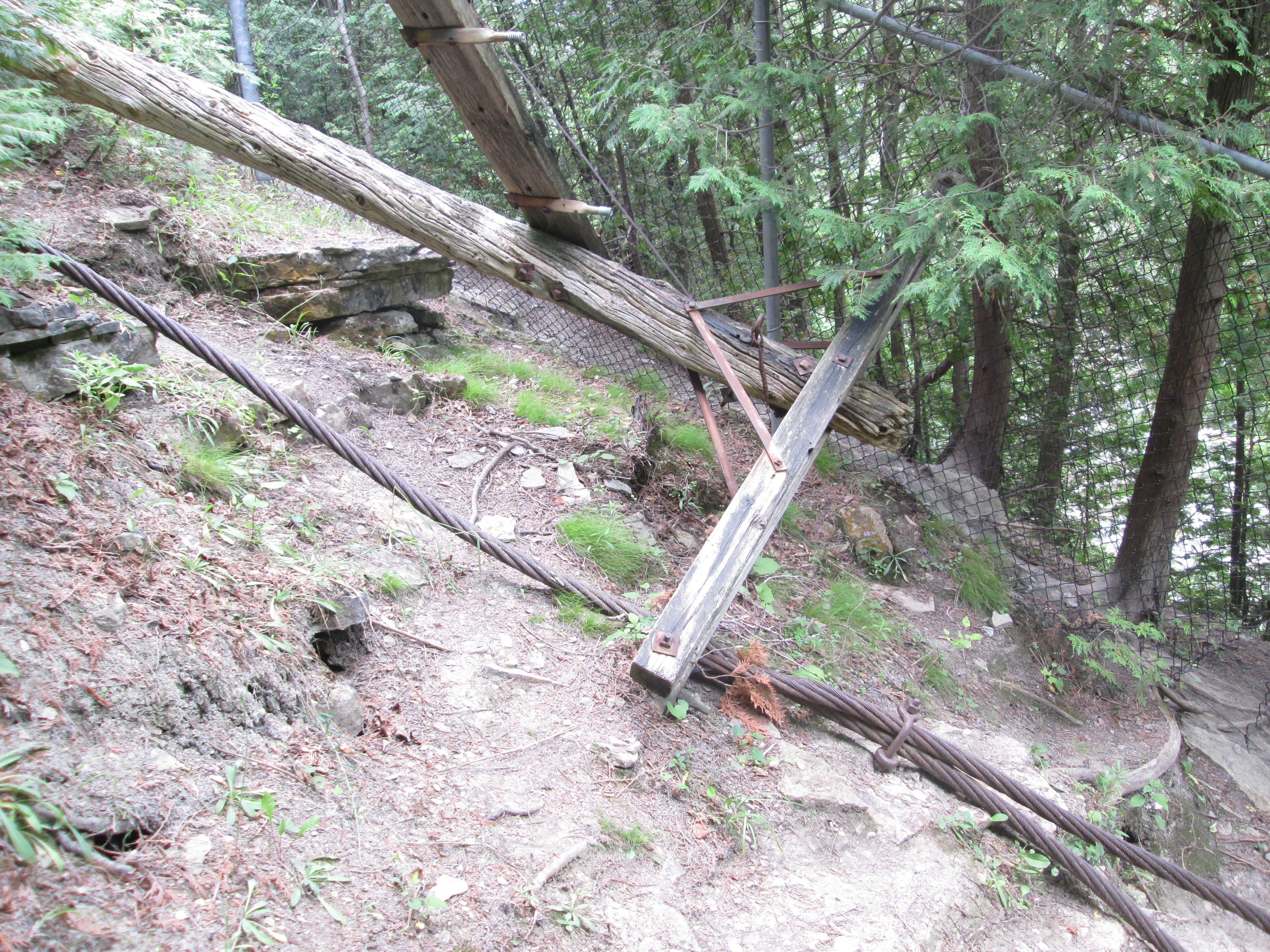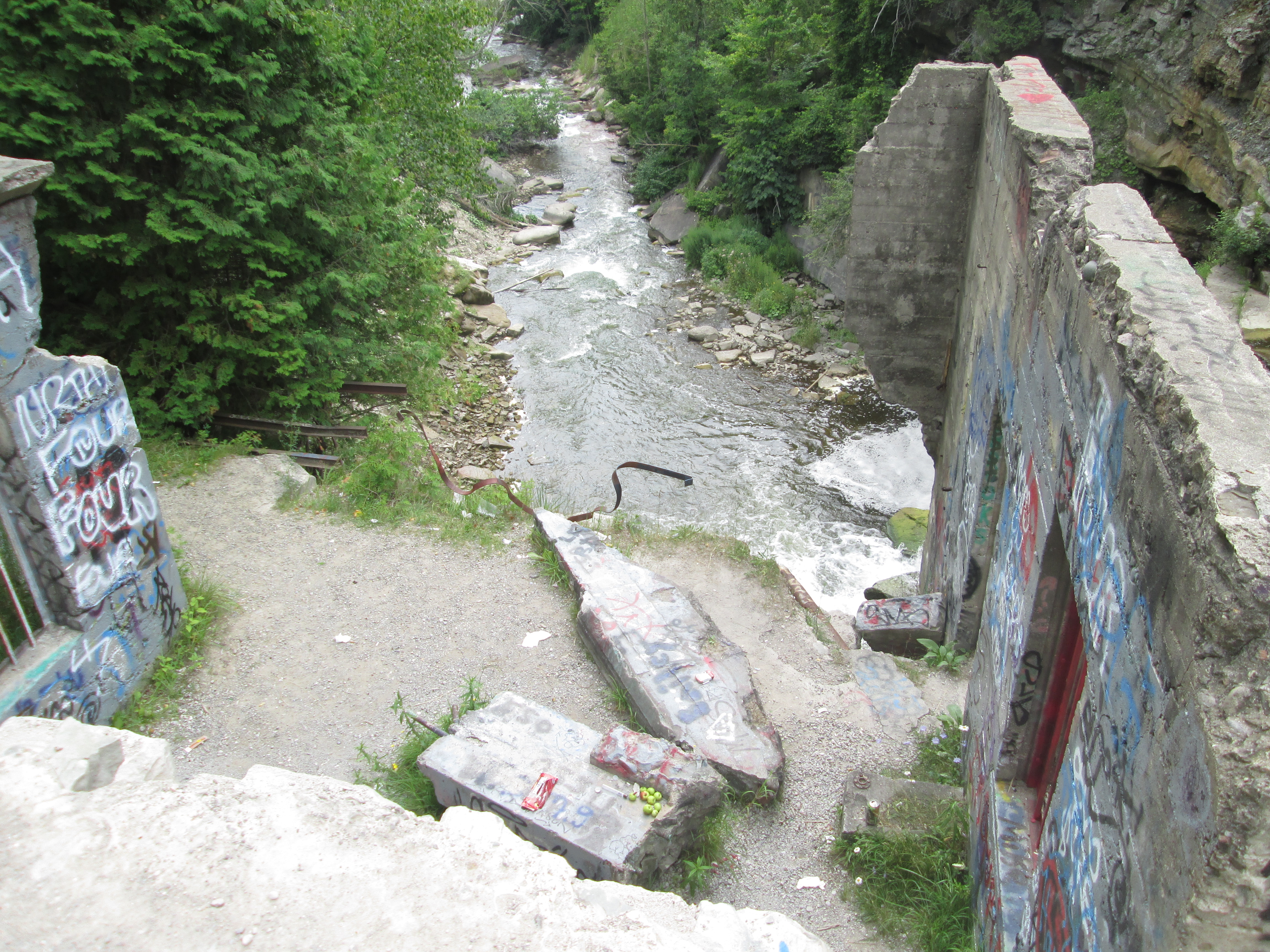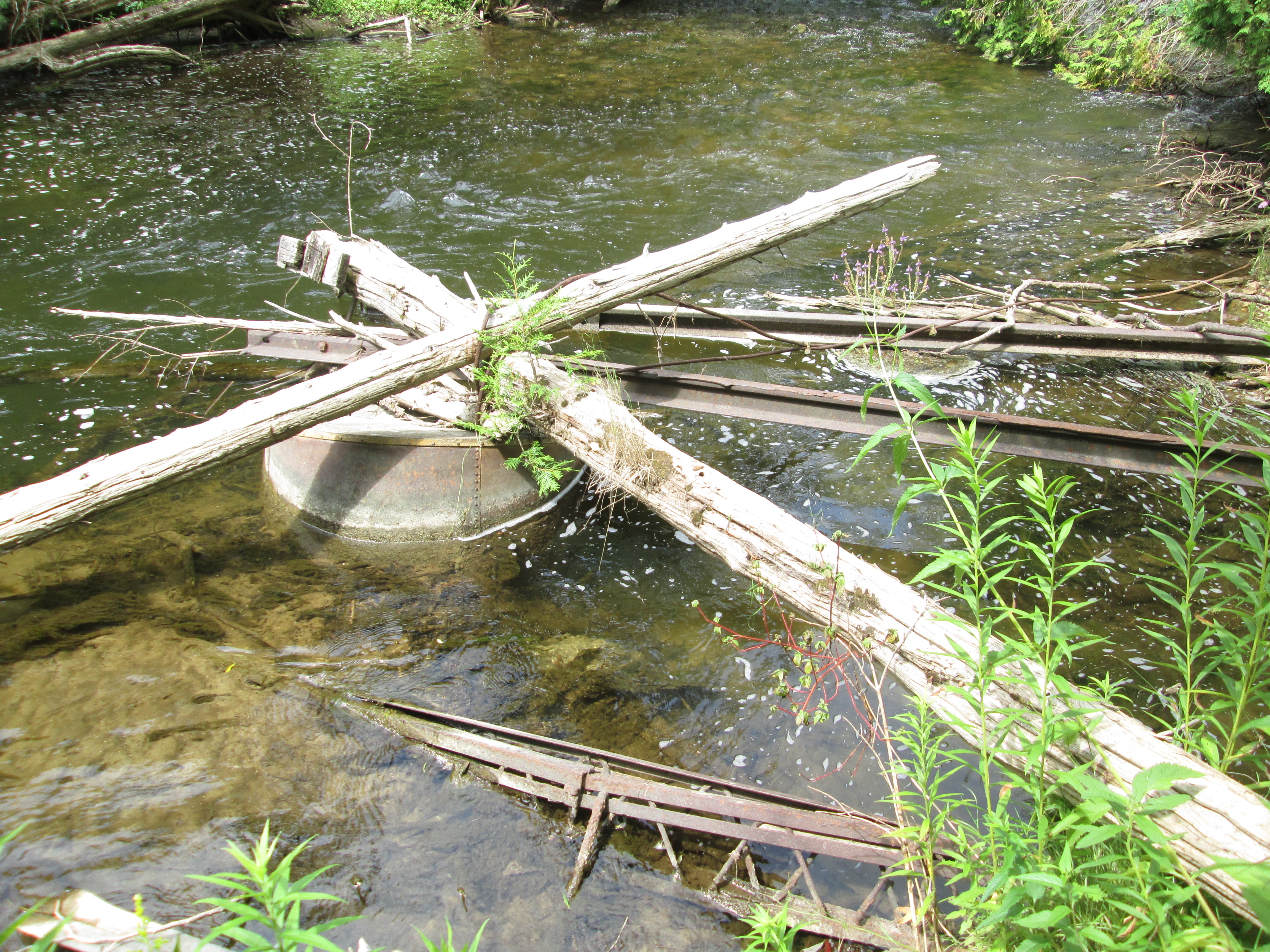 Evidence of former power transmission equipment now lays in the river a little farther along.