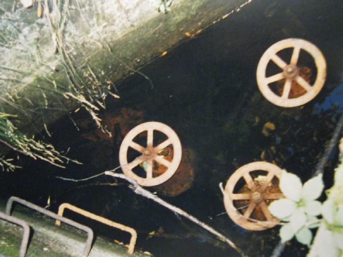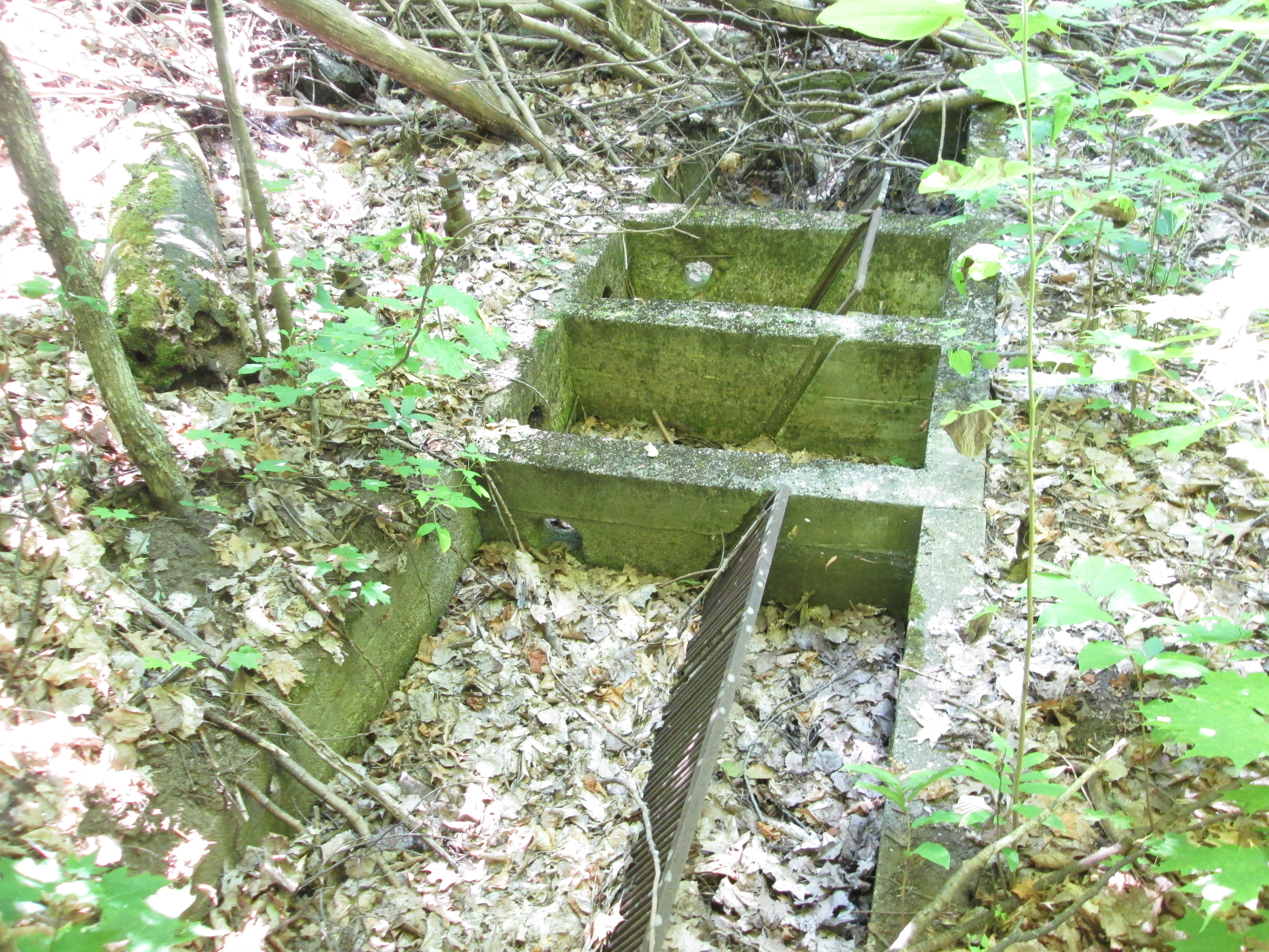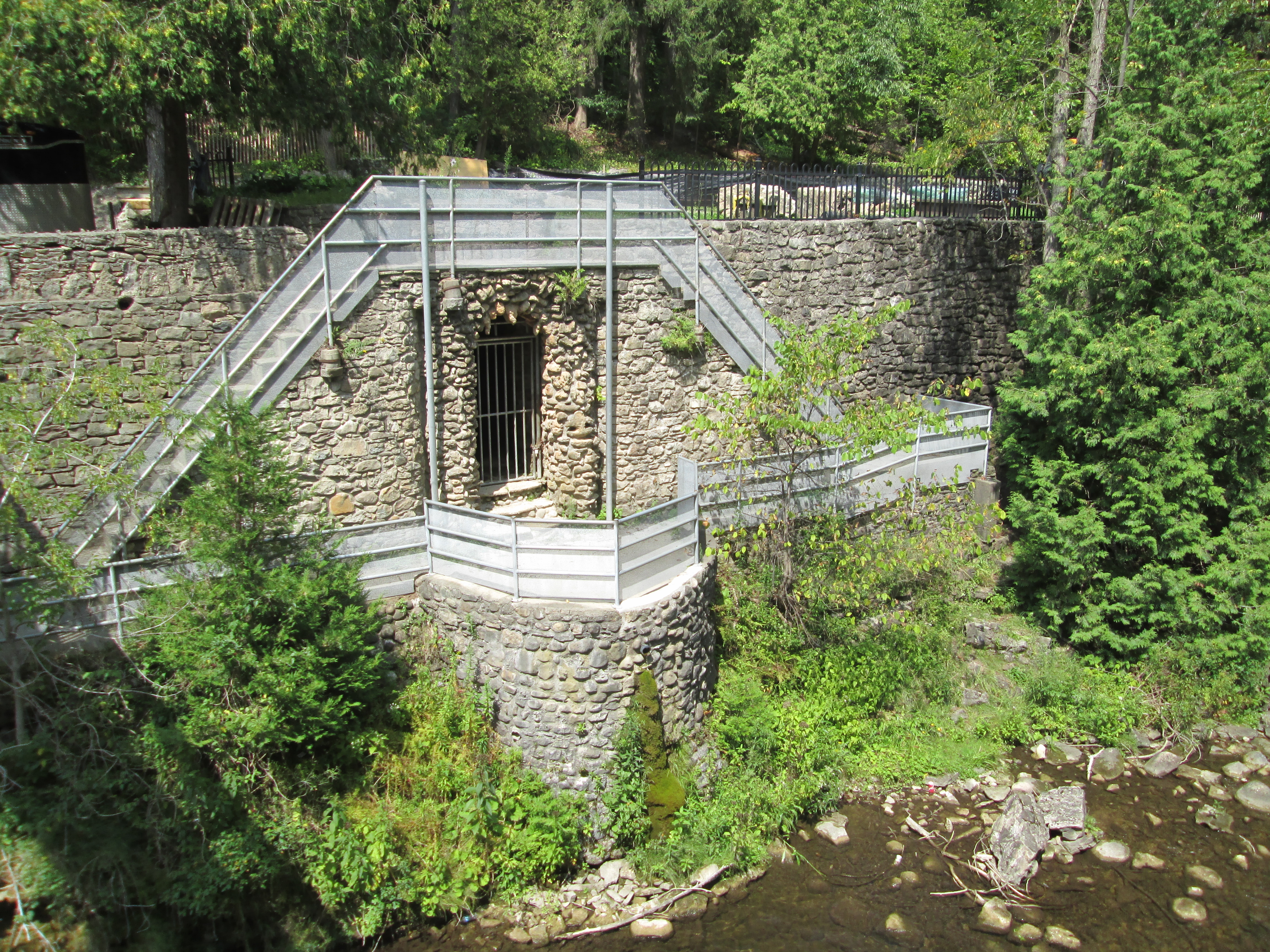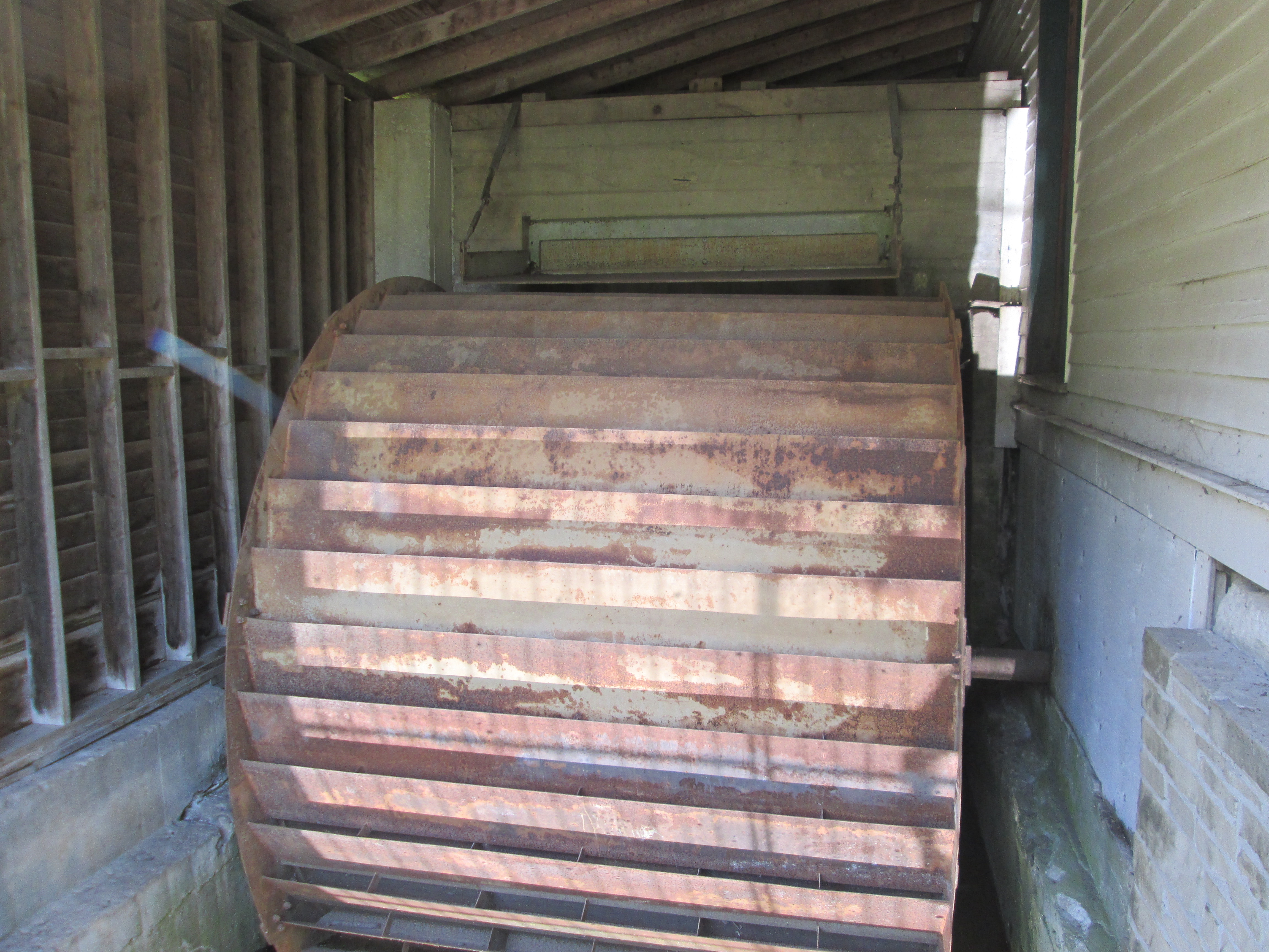Two metal penstocks remain beside the building at the far side of the dam. The mill operated on a turbine whose intake can be seen just at water level in the previous photo. As water levels dropped the Dods were forced to install a coal powered generator for additional power.