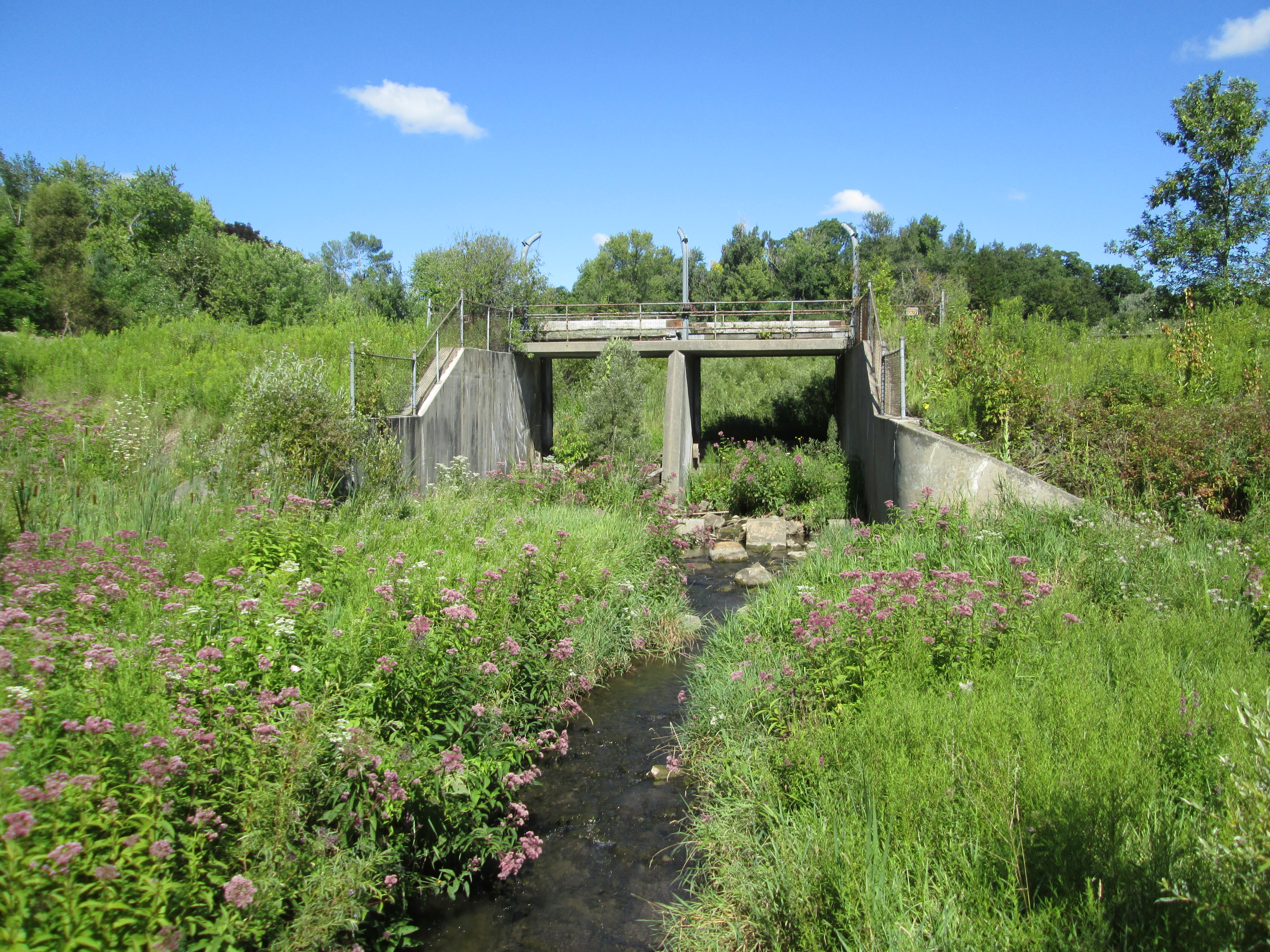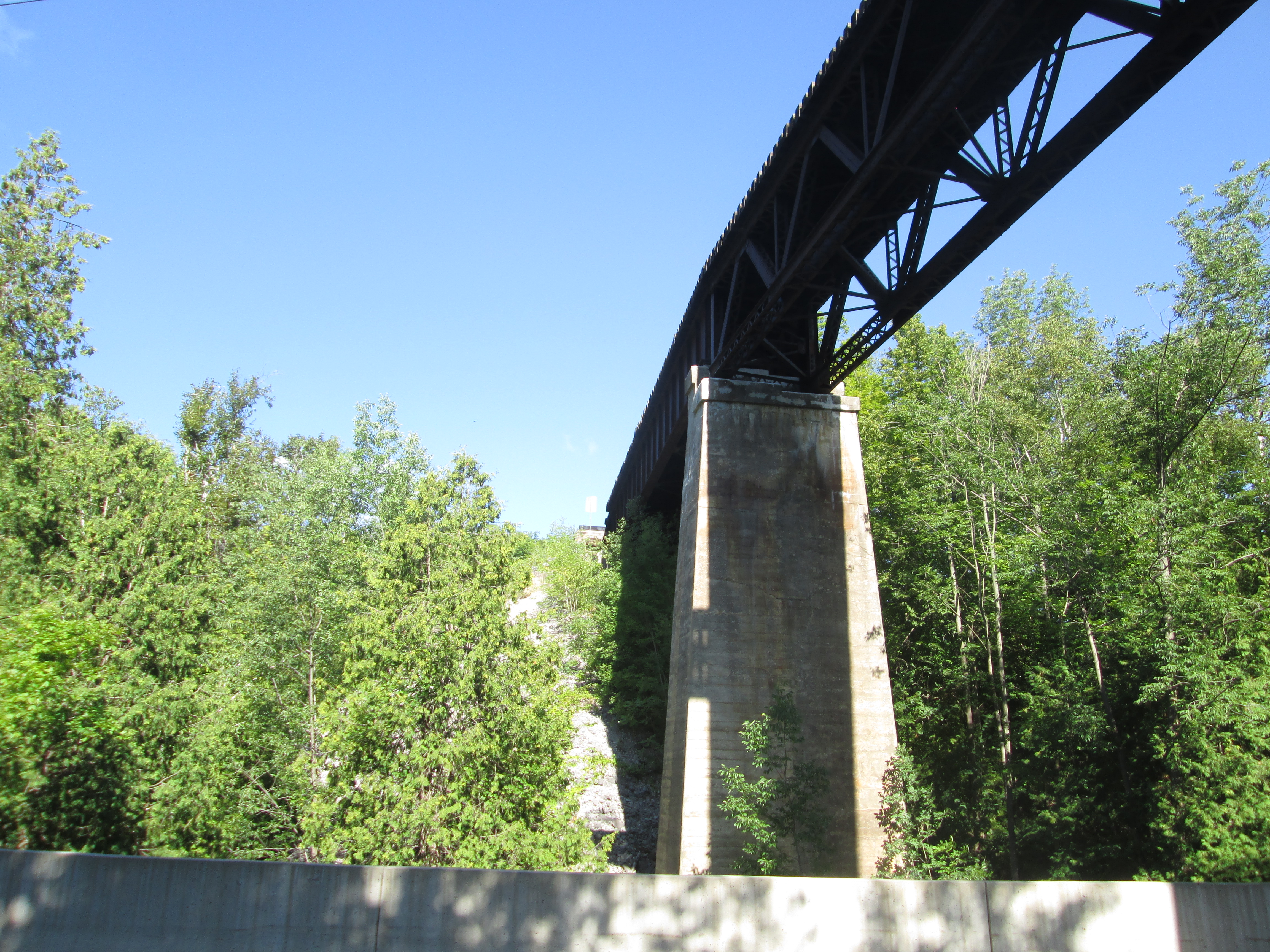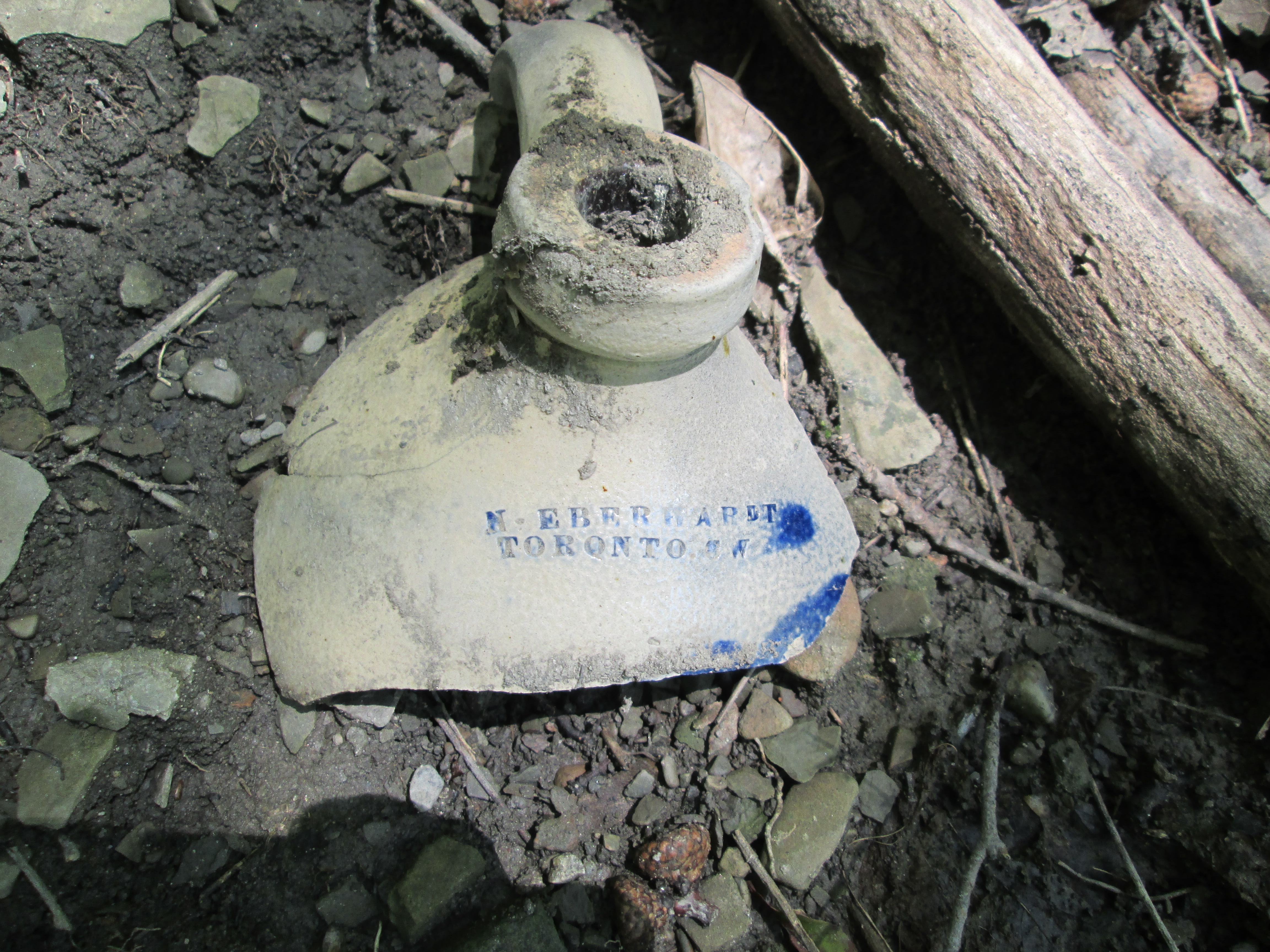 Shaw’s Creek drops 108 feet through a mile long series of rapids making it ideal for water powered industry. At one point there were 8 dams and 12 mills operating along this stretch of the creek. We parked on Mississauga road and started to follow a fisherman’s path along the north side of the creek. It was overcast and 15 degrees but it soon became very hot and humid.