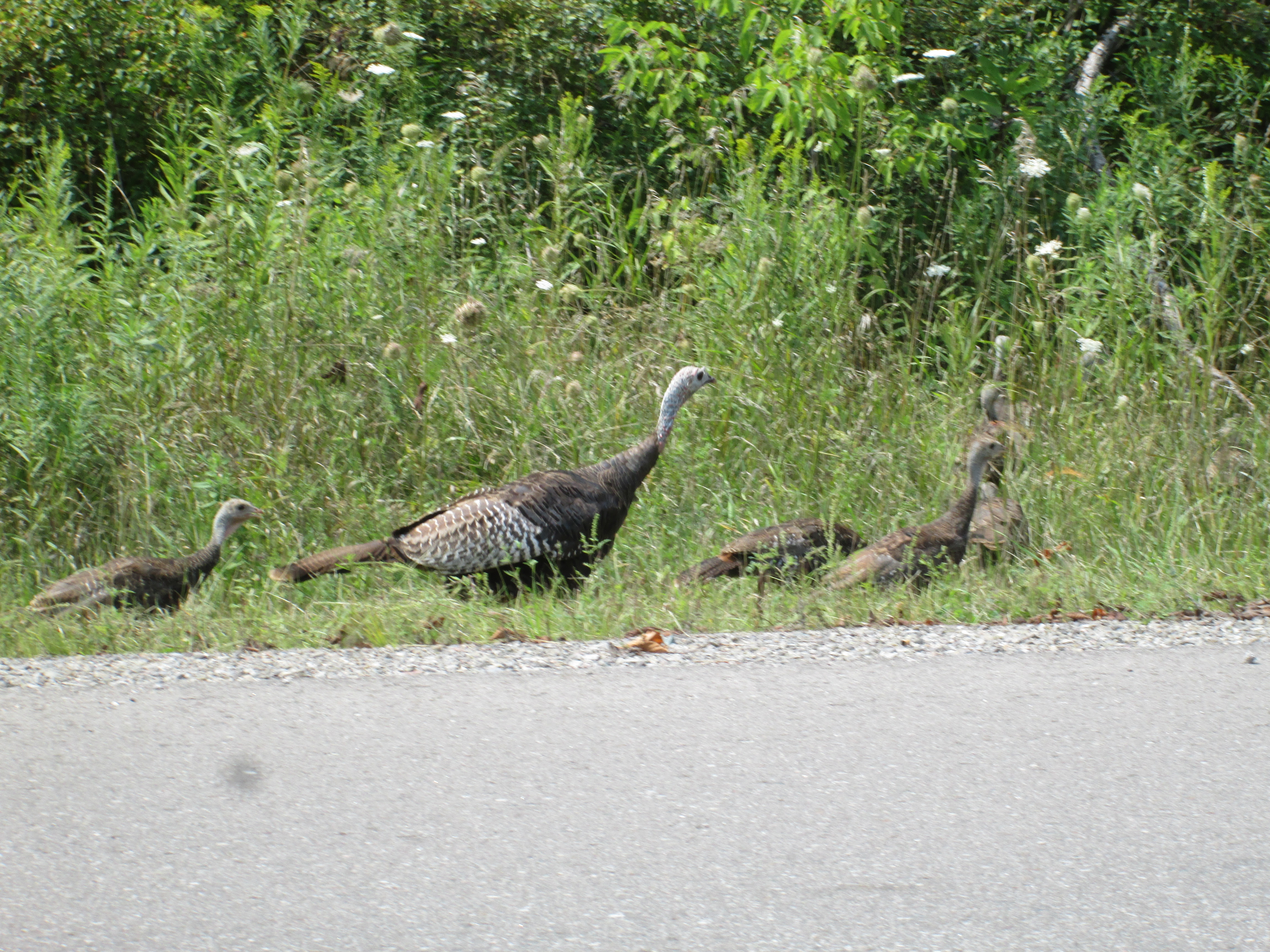 Back near the car on Mississauga road we encountered a pair of wild turkeys with half a dozen young ones or poults. By 1909 the wild turkey had been wiped out in Ontario mostly due to loss of forest cover for the poults to be raised in. Between 1984 and 1987 4, 400 wild turkeys were re-introduced into locations across the province. With broods of 10 to 12 per year their numbers now total over 100,000 and they are hunted in both a spring and fall season.