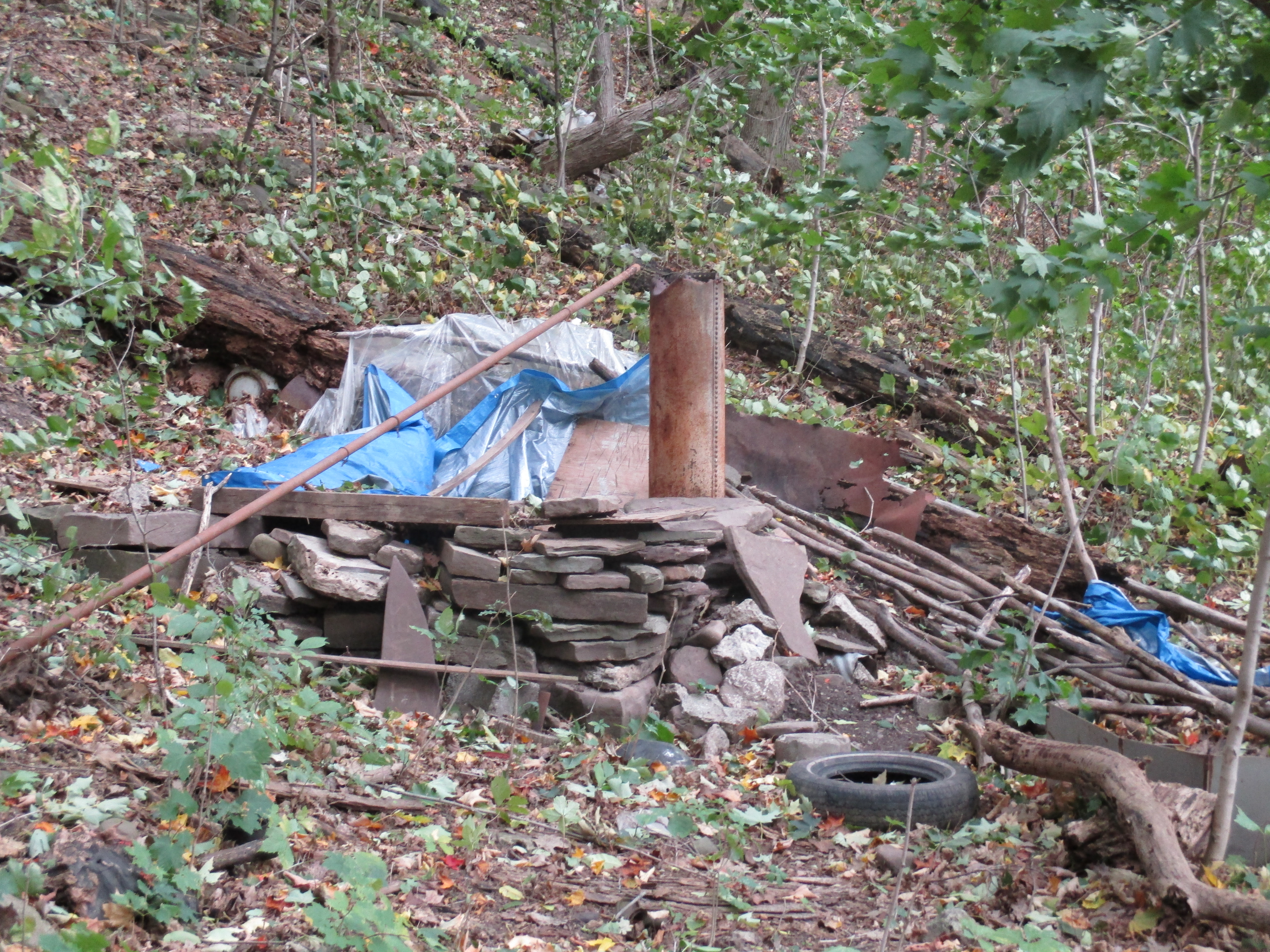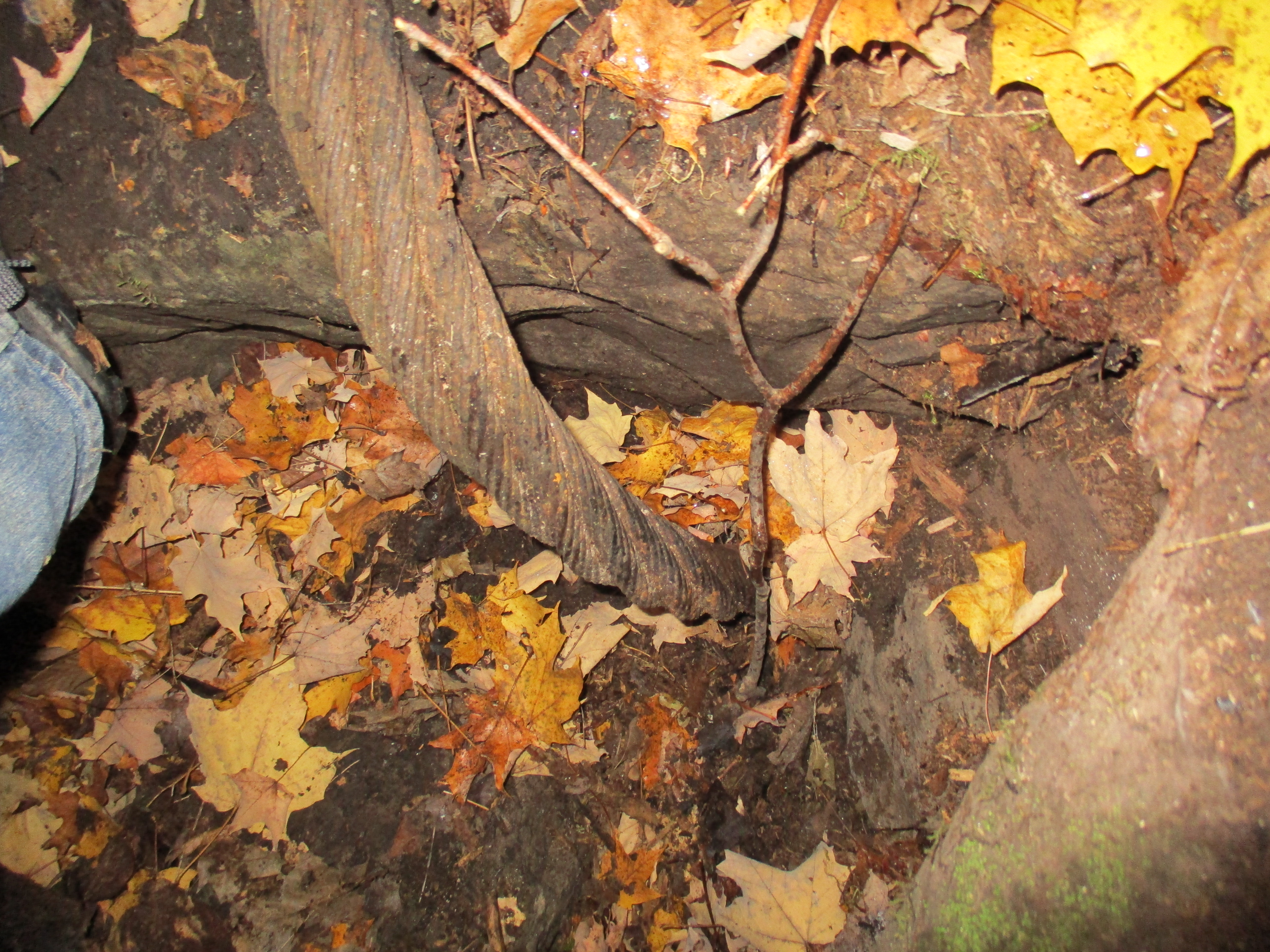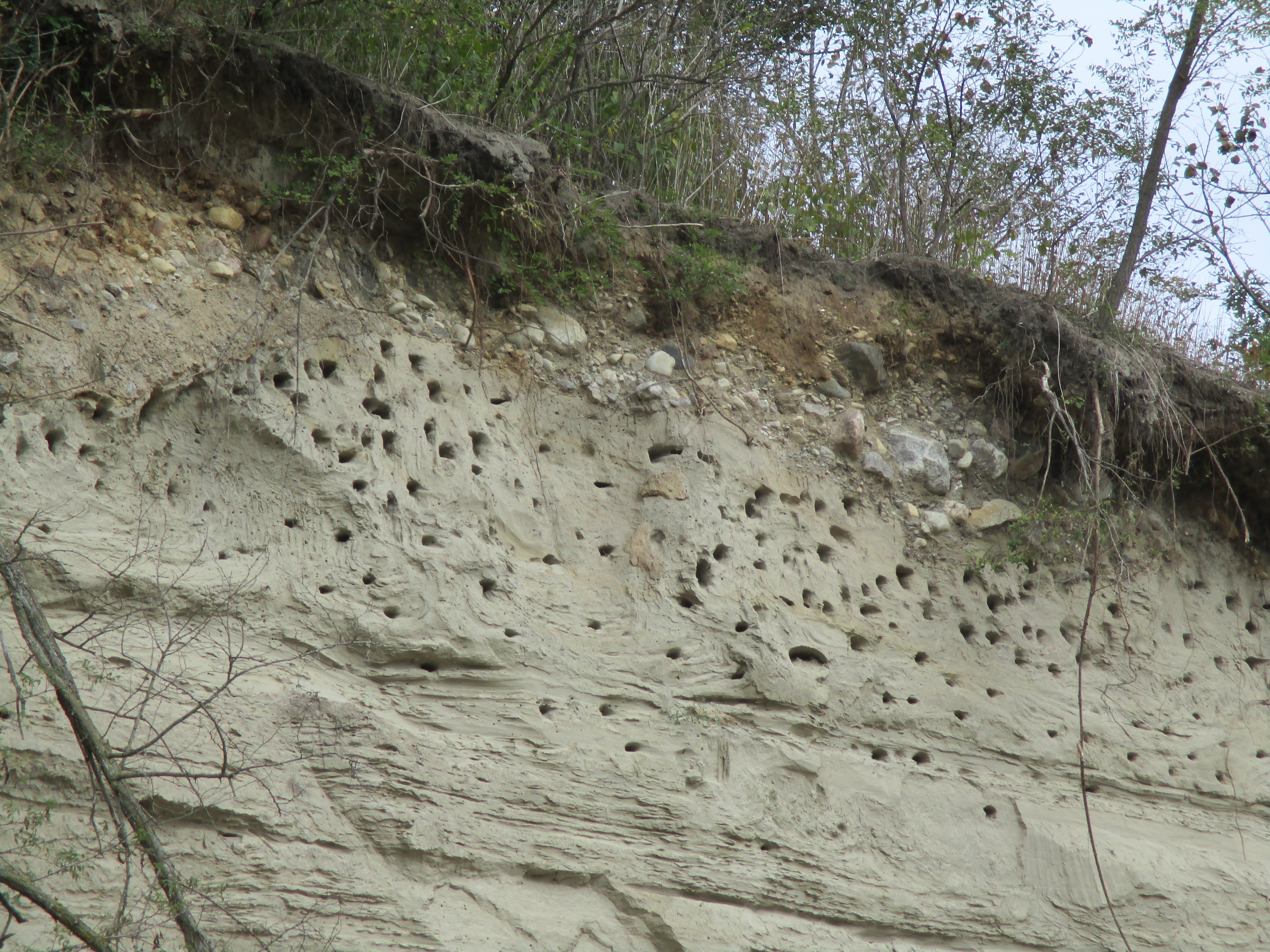 Along the side of Newtonbrook Creek there are extensive sand deposits. The creek has cut through these indicating that it had a much stronger flow at times in the past. The sandbank below had several small holes and one large one cut into it. Suspecting a large animal, perhaps a coyote, had made that large hole I decided to work my way around for a closer view. It is simply a spot where a large chunk of sand fell out due to erosion.