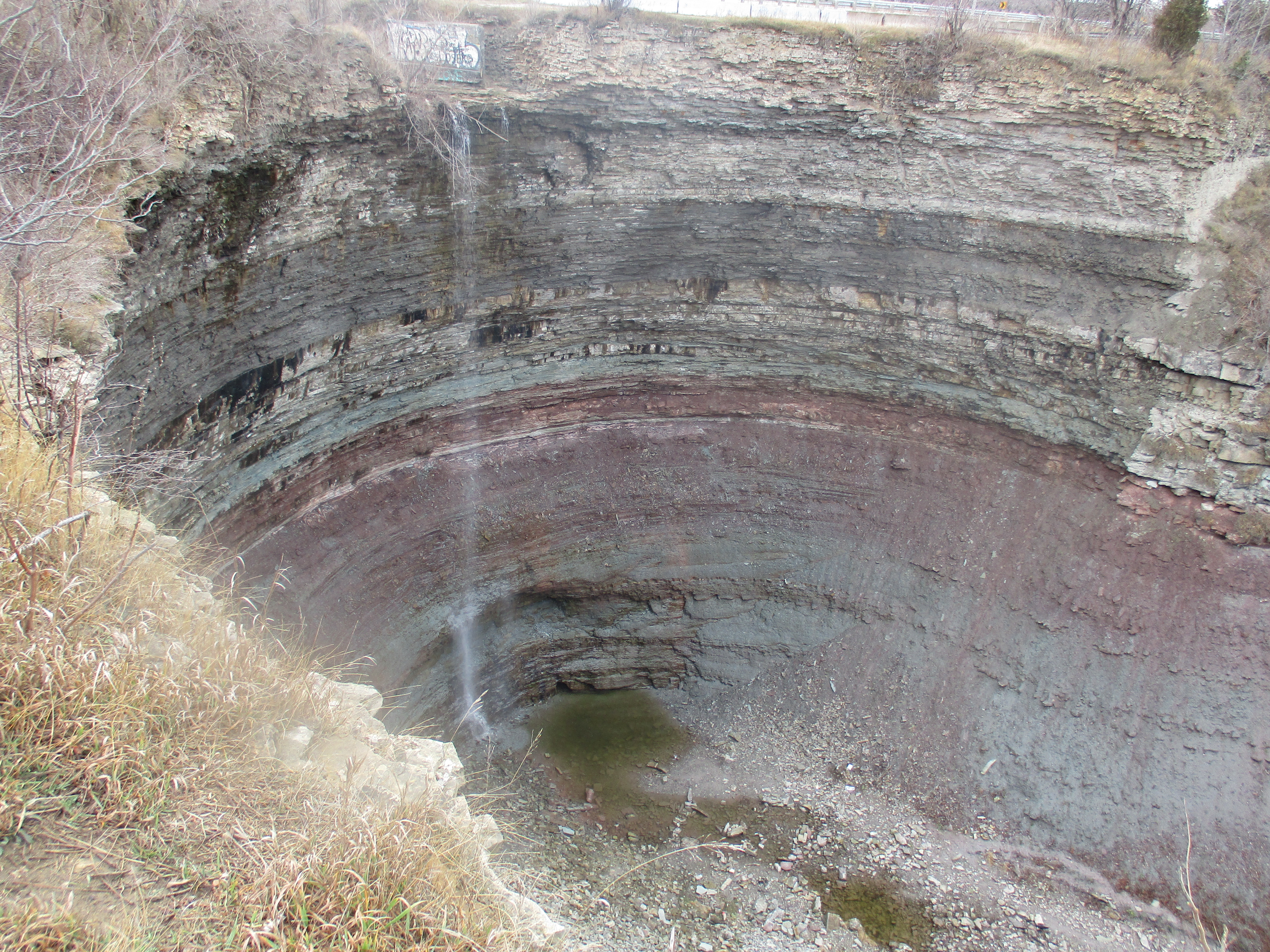 Saturday Dec. 26, 2015 The Devil’s Punch Bowl is a 37 metre gorge in the Niagara Escarpment near Stoney Creek where all the various strata of the Paleozoic era can be seen together. Their colourful sequence along with a pair of waterfalls makes this a gorgeous gorge. There is paid parking in the Devil’s Punch Bowl Conservation … Continue reading The Devil’s Punch Bowl