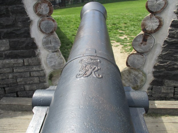 After the war was over a new powder magazine was built not far from where the previous one had been detonated. The date stone has been replaced with a replica while the original is preserved in the museum at the fort. The initials stand for Georgius Rex III (King George 3rd) and the 54th year of his reign (25 Oct. 1813 to 24 Oct. 1814).