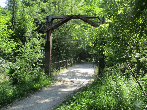 There are five bike trails in the park that give you the chance to get off the main path. There is one bridge to allow you to cross to the other side. It was built in 1975 and is featured in the cover photo.