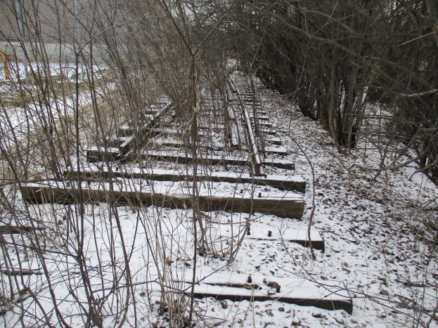 Work was completed on the next section of the trail during the winter of 2001/2002. Winter was chosen so the impact on the local environment would be lessened. A boardwalk was constructed to carry the trail above the creek as it passes under the railway tracks. The concrete bridge over Devil’s Creek replaces an earlier wooden trestle, of which the pilings can still be seen between the boardwalk and the concrete as you pass by.