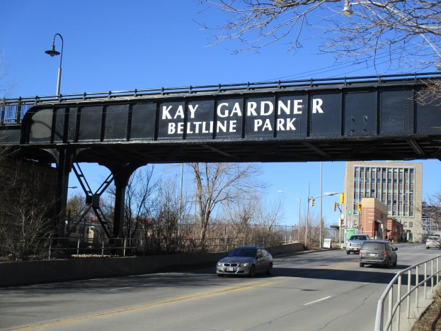 Devil’s Creek, and the Devil’s Creek Trail both pass under George Street before coming to their respective ends just beyond. Devil’s Creek ends in a 12-metre cascade down to The Grand River below. Devil’s Creek Trail ends at The Grand Trunk Trail which connects to several other trails in the neighbourhood.