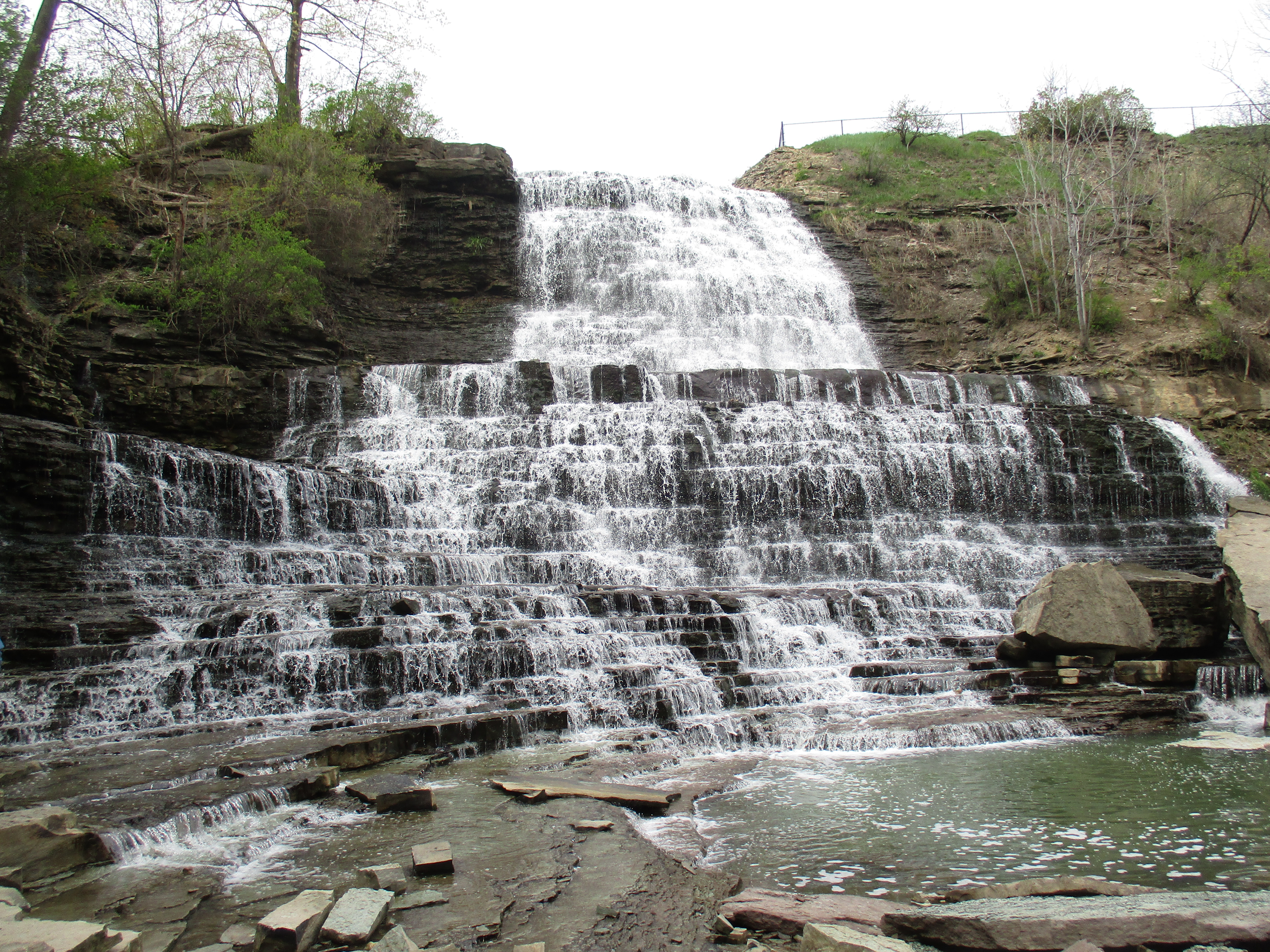 Saturday, April 29, 2017 Albion Falls is known as a classical, cascade, complex falls because of the stages in the falls. The total height and width where Red Hill Creek flows over the escarpment are very similar with the height being 19 metres and the width being 18 metres and this makes it a classical … Continue reading Albion Falls