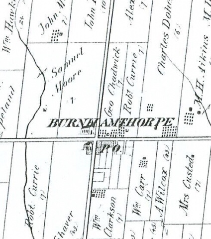The archive photo below shows the village wagon maker’s shop. The population of Burnhamthorpe reached a peak of about 100 in the 1870’s.