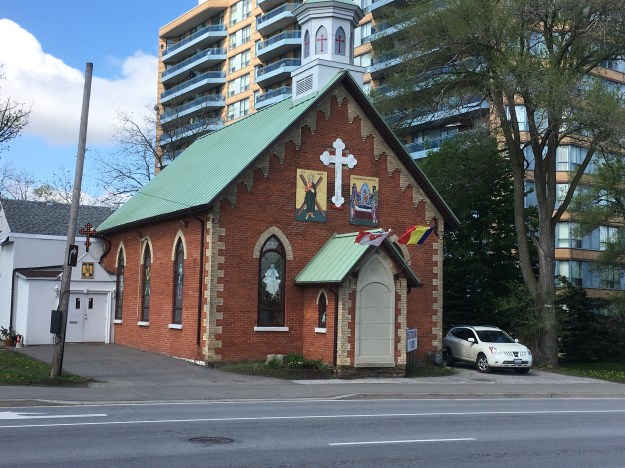 Burnhamthorpe was a Methodist village with the first two buildings standing beside the pioneer cemetery on the south west corner. In 1874 land was purchased on the north west corner to build a new church. The name was changed to the United Church of Canada in 1925 from Burnhamthorpe Methodist Church . The church closed in 1978 after 104 years of service . The building was given an historic designation in 2013 and currently is used by St Apostle Andrew Romanian Orthodox Church.