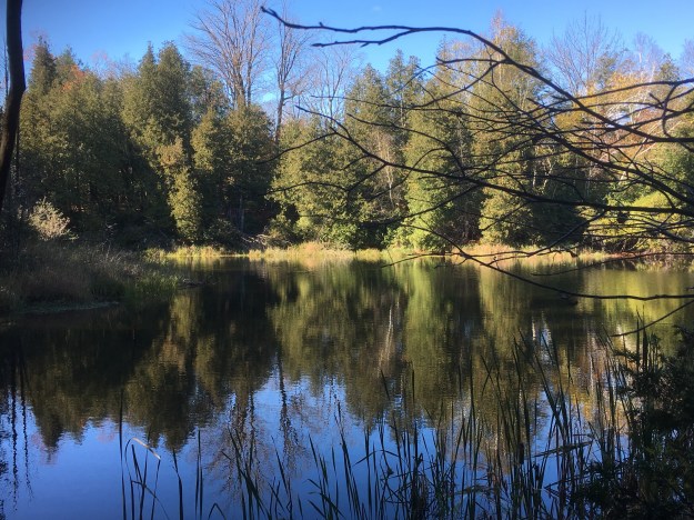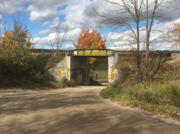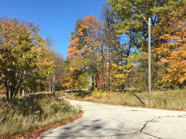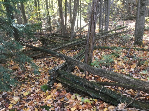 There are some large trees in the woodlot and white tailed deer have made the former community their home. Fields of milkweeds suggest that this will be a prime habitat for monarch butterflies in the coming years. Many of the birds have left for warmer climates but the woods must be alive with songbirds in the summer. It’s getting late in the season but the hardier species of mushrooms can still be found and this log has turkey tails growing around the end and all down the sides.
