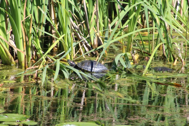 The subway tunnel follows the path of Castle Frank Brook which is also buried beneath the park. Above ground wetlands have reformed where the creek once flowed. Butterflies, such as this red admiral can be seen throughout the park.
