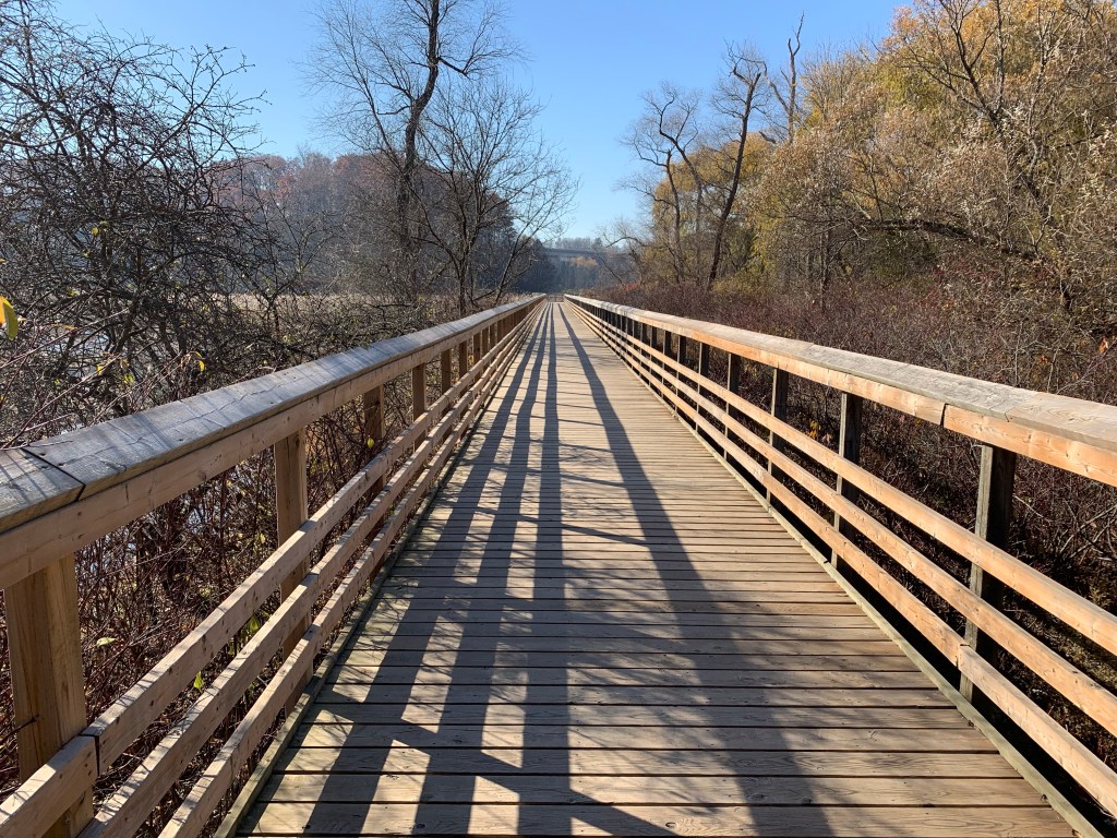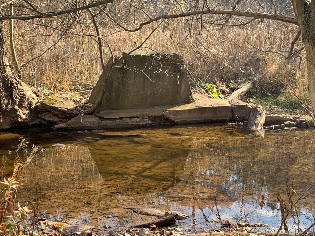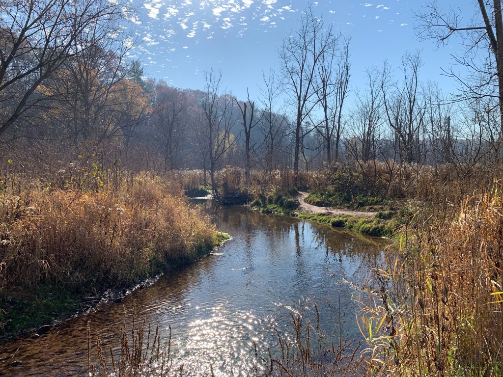There are several pedestrian bridges that cross Grindstone Creek and evidence that there were previous bridges as well, perhaps dating to the days of private use for horse farming.