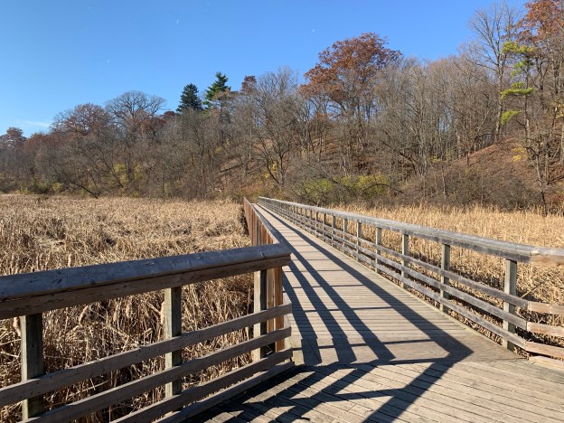 The main trails in the park are well maintained and there are very few side trails. The Royal Botanical Gardens tries to keep large sections of the grounds free of trails and discourages off trail exploration so the local wildlife can enjoy the sanctuary. Bicycles and joggers are not allowed and all pets must be kept on a leash. It is also a rule that no one can feed the wildlife but as I found out, that one is not observed.