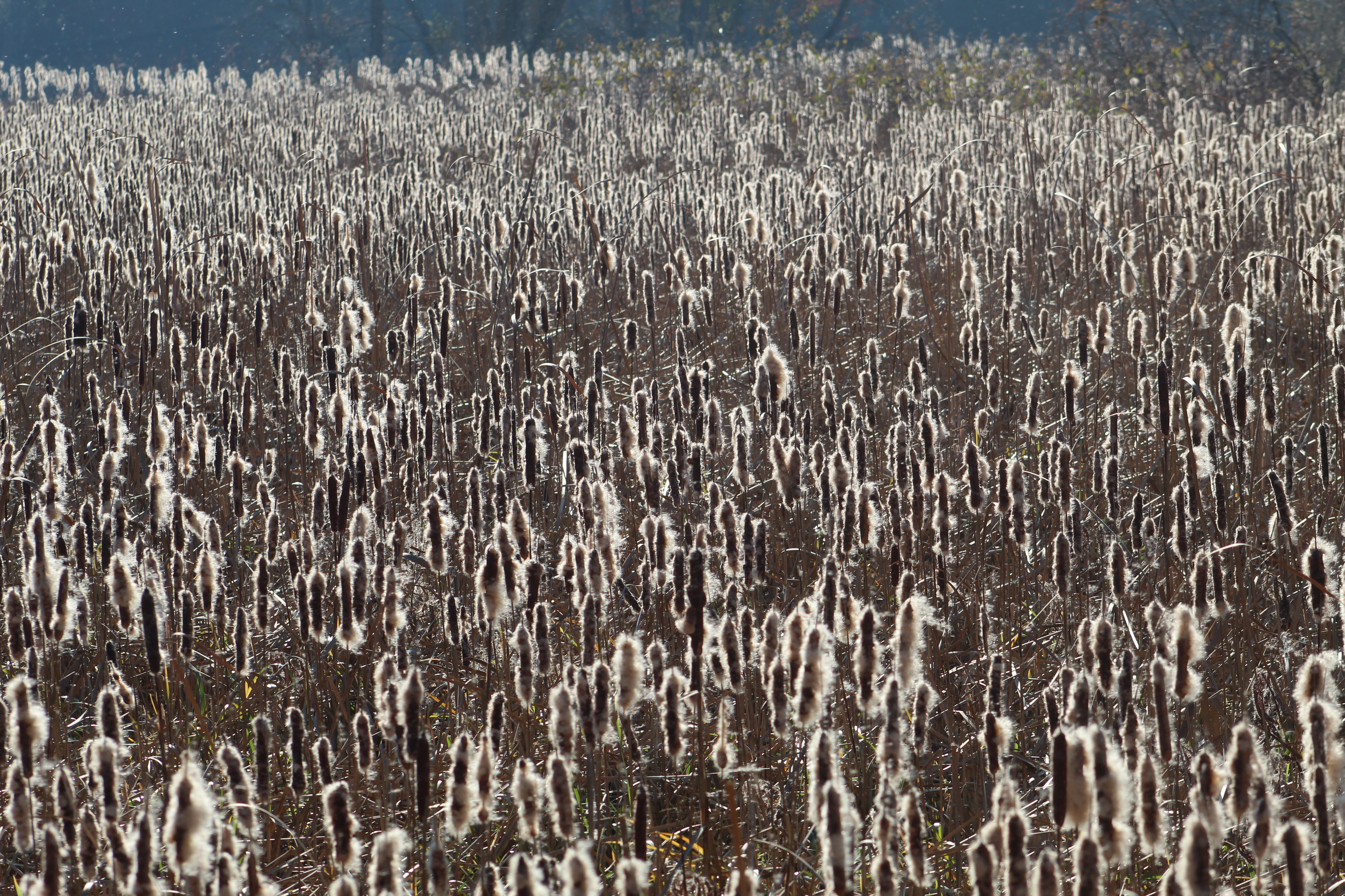 The sunlight was shining on the seeds from the sea of cattails that have populated the marshlands. Considering that each one of these cattails can contain up to 25,000 seeds it is little wonder that they spread very quickly.