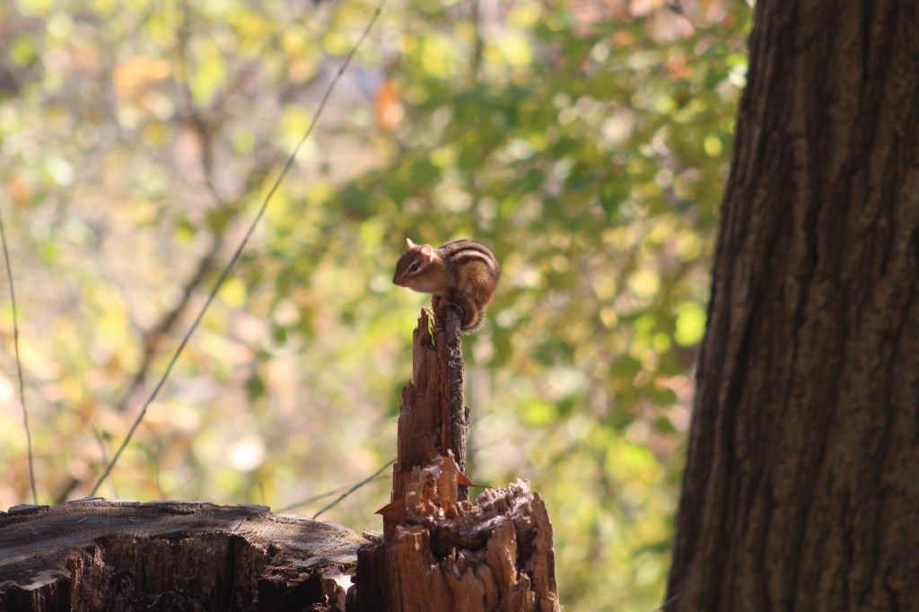 The chipmunks also love the free food that has been left for the birds and so there are a lot more chipmunks here than I am used to seeing in one place. It is also reported that there is an increased number of chipmunks in 2020 because of an unusually large acorn crop last year, which allowed them to do better over the winter. There also seems to be a large crop (or mast) this year based on what we saw during our trip to The Credit River in Georgetown back in September.