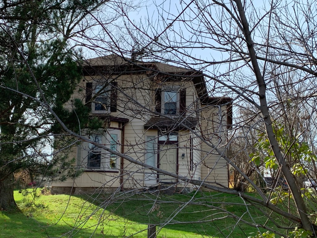 The Millers Residence was built in 1858 beside the mill race and across the street from the mill. An entire commercial block has been added to the original two and a half story home but it can be seen in the left of the picture below. The gothic influenced gabled roof sets it apart from the three story Georgian commercial block in the middle and the mansard roof of the Queen Anne styled section on the end.