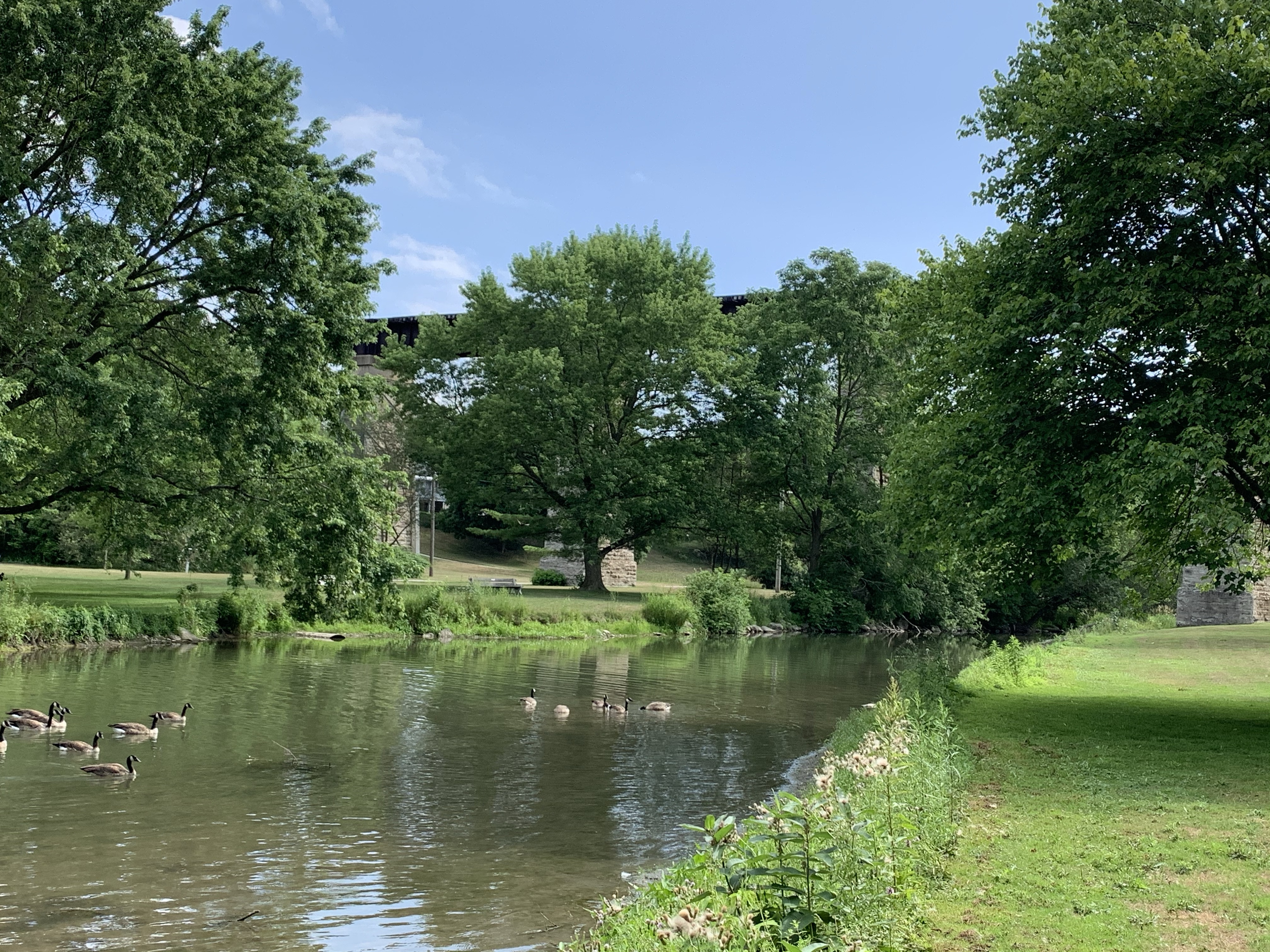 St. Marys was founded in 1841 when Thomas and James Ingersoll bought 400 acres of land near the junction of Trout Creek and The Thames River. They dammed the Thames River just below the confluence and built mills on the south side of the present Queen Street. The mill race that fed their mills was incorporated as an integral part of the Victoria Bridge when it was built in 1864. The mill race was restored in 1980 and now has its own heritage designation. I visited here in July when the first wave of Covid was just relaxing and took these pictures that I present now that travel is once again restricted due to the pandemic. Hopefully we’ll get back to newly explored material before too long.
