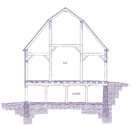 The Cob Courtyard was built as a food preparation area and has a kind of “Flintstones” look to it. It is currently undergoing some restoration work to repair the deterioration that it has suffered over the years.