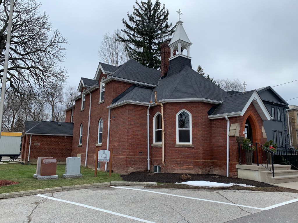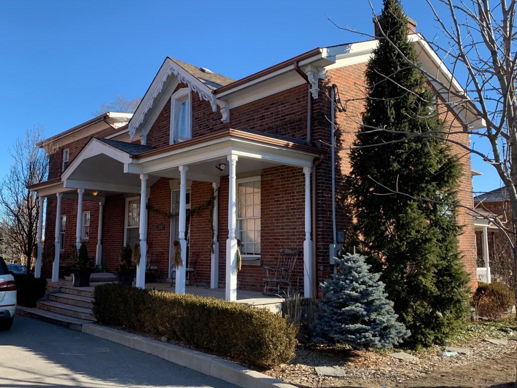 Burnhamthorpe reached a maximum of about 100 people in the 1870’s and then began to decline. Several houses and an old church remain and the one shown below was built in 1882. Between 1897 and 1912 it served as a store and the community post office.