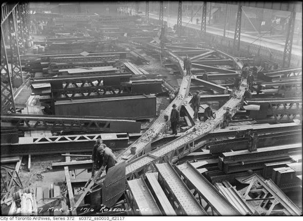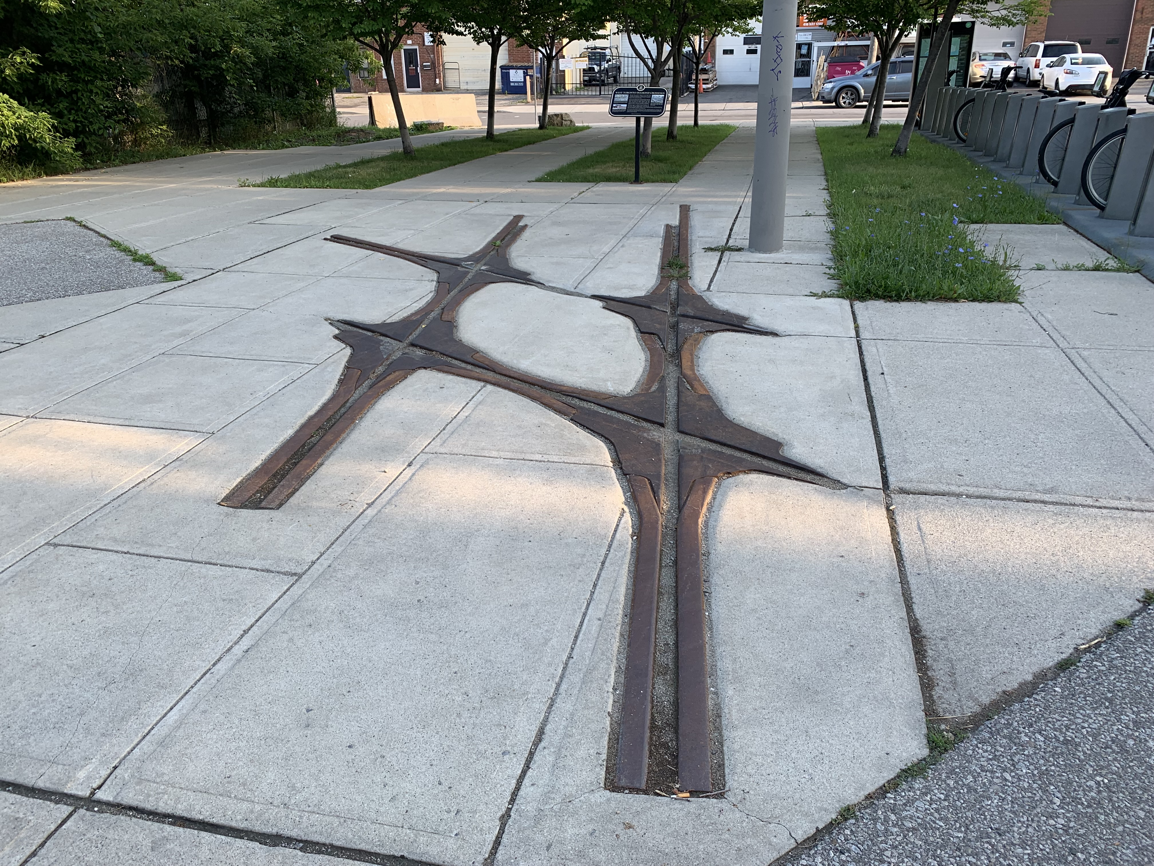 The steel top is showing some signs of rust but is otherwise still in good shape. I can’t find any heritage designation for the Washago coaling tower but there’s very few of them remaining. There’s a three-bay concrete coaling tower preserved in downtown Toronto at Roundhouse Park along with several other railway era artifacts including a water tower and train station.