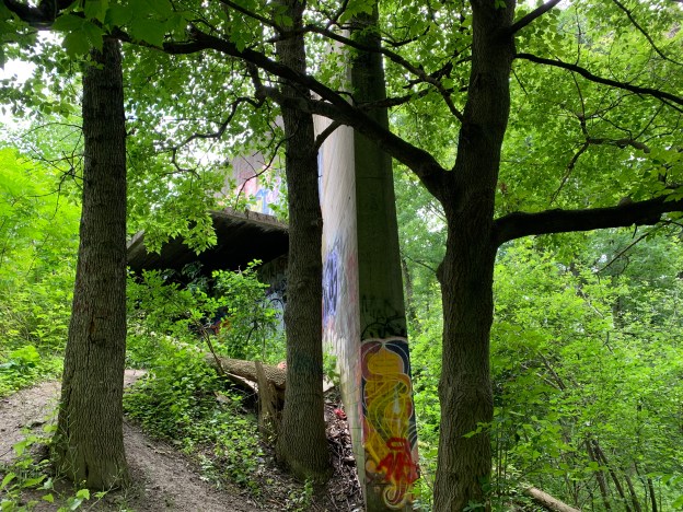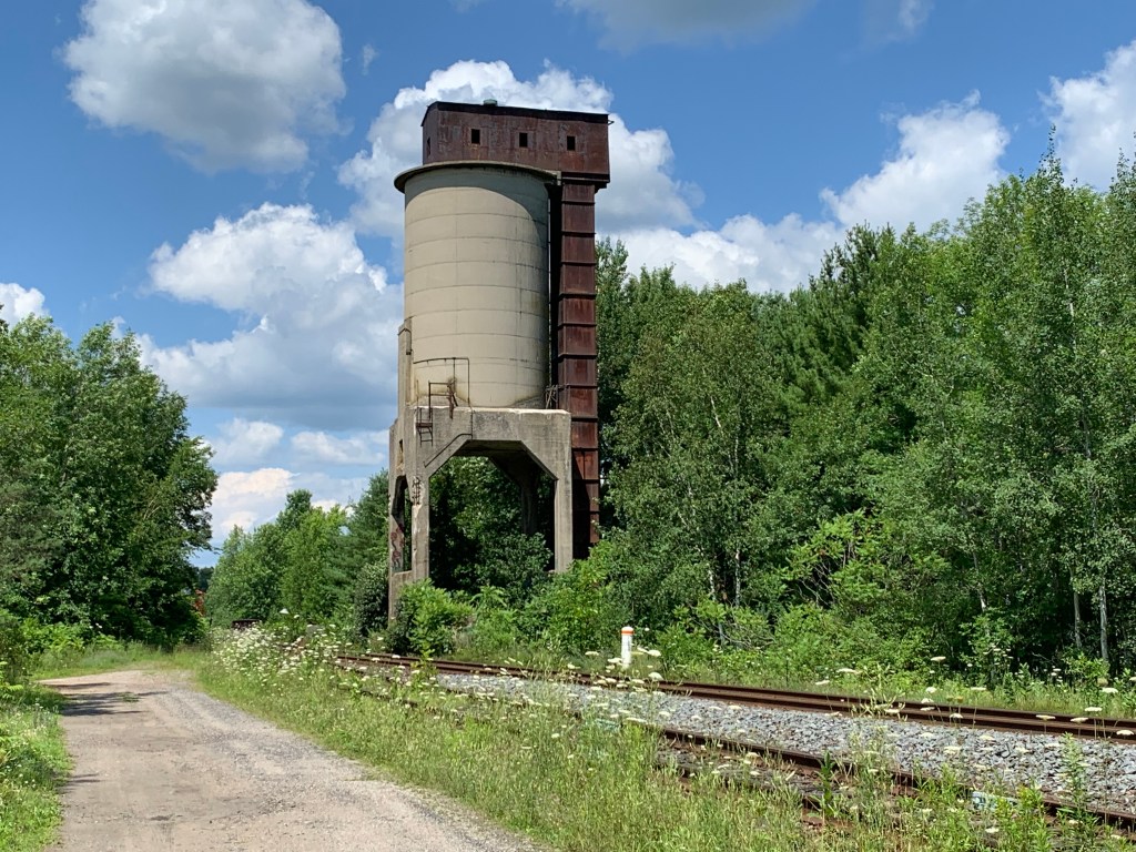As railways converted to diesel locomotives the old coaling towers became obsolete and many of them were demolished. The Washago tower was left standing beside the rail line and it has been slowly deteriorating ever since. Today, there are small sections of concrete that are breaking away but it appears to be structurally sound all the same.