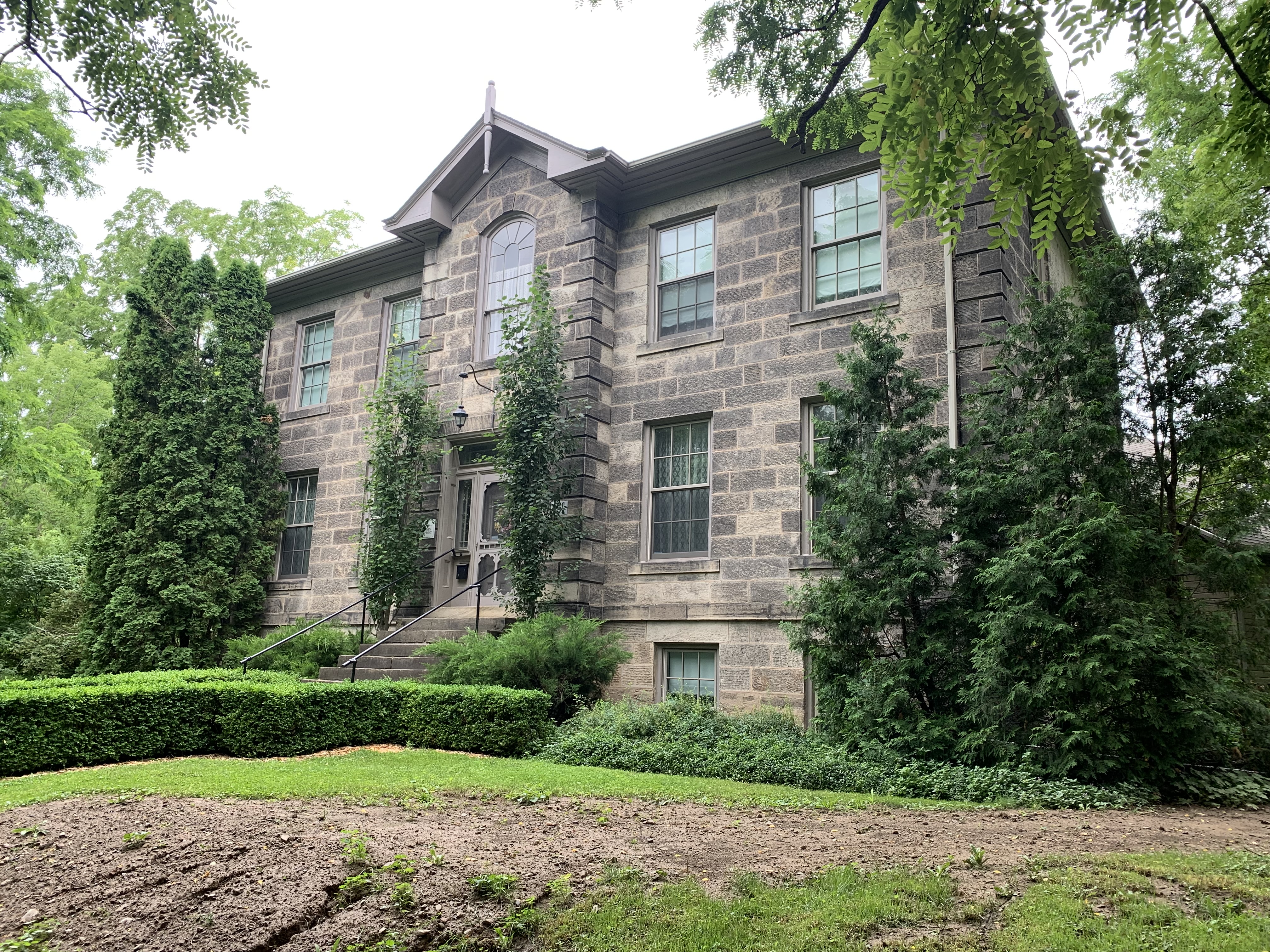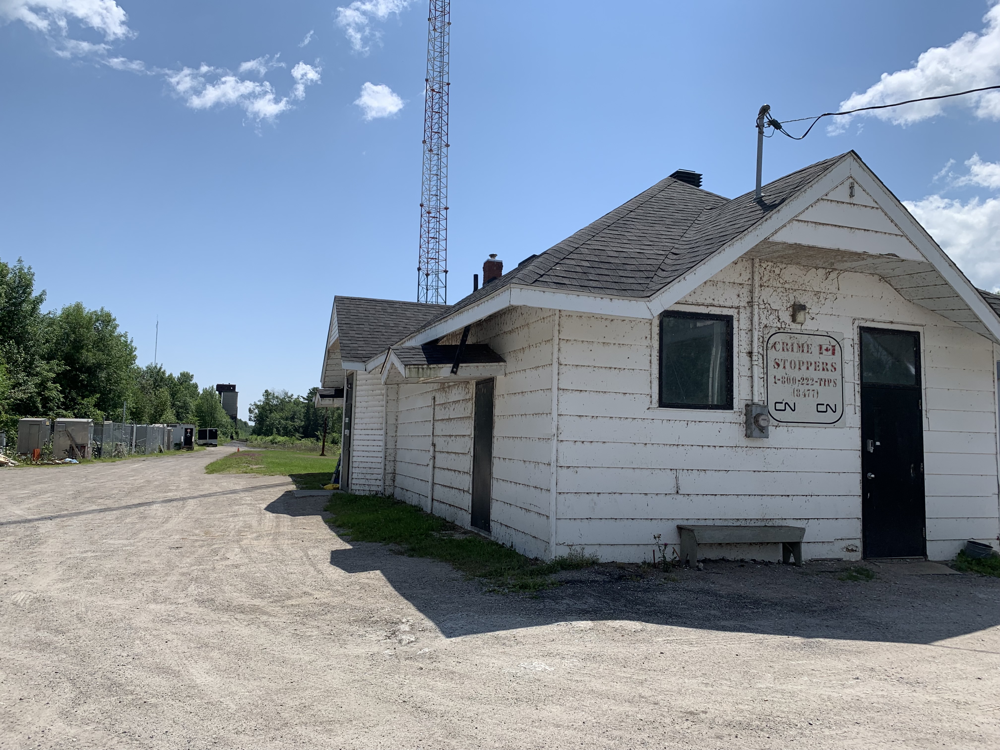 To accommodate the rail lines that passed on either side of the station a bay window was constructed on the back side of the station. Today, the building serves as maintenance space for CN employees.