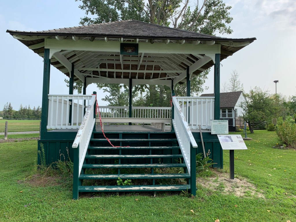 In the 1830s Jackson’s Point was a destination for steamships that visited for trade, and later, for tourism. Sometime between 1910 and 1920 the bandshell was built as a shelter on the end of the government wharf. In 1977 it was dismantled and moved to the present site at the Georgina Pioneer Village and Archives. Here it was fully restored and added to the collection of historic buildings. We’ll look at a few other buildings from Pioneer Village a little later in this post.