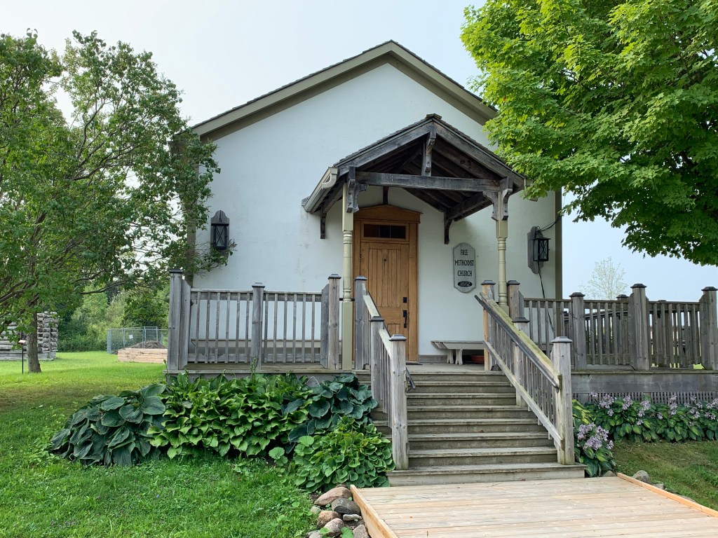 Prior to 1884, there were several Methodist Denominations that competed for the same adherents. The Primitive, Wesleyan, Episcopalian, and New Connexion all united as simply The Methodist Church leaving only the Free Methodists as a separate denomination. The Methodist Church in the Pioneer Village is believed to have started life as a Wesleyan Methodist Church in Elm Grove around 1871. When it closed, the Free Methodists bought the building and moved it across the street. They met there from 1887 until 1925 when they joined with the newly created United Church of Canada. The oldest continually serving Free Methodist Church in Canada continues to hold services in Armadale. You can read about it in our feature Armadale Free Methodist Church.