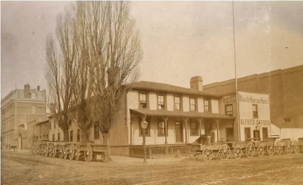 In 1880 a coach house and stables were built on the south end of the property behind the hotel. Although just two stories in height, it was constructed with windows and brickwork to match the hotel. The hotel was sold to Robert Davies in 1885 and he rented it out to tenant operators who ran it as Little York Hotel and the York House. In 1900 it was renamed York Hotel which it operated as until 1925.