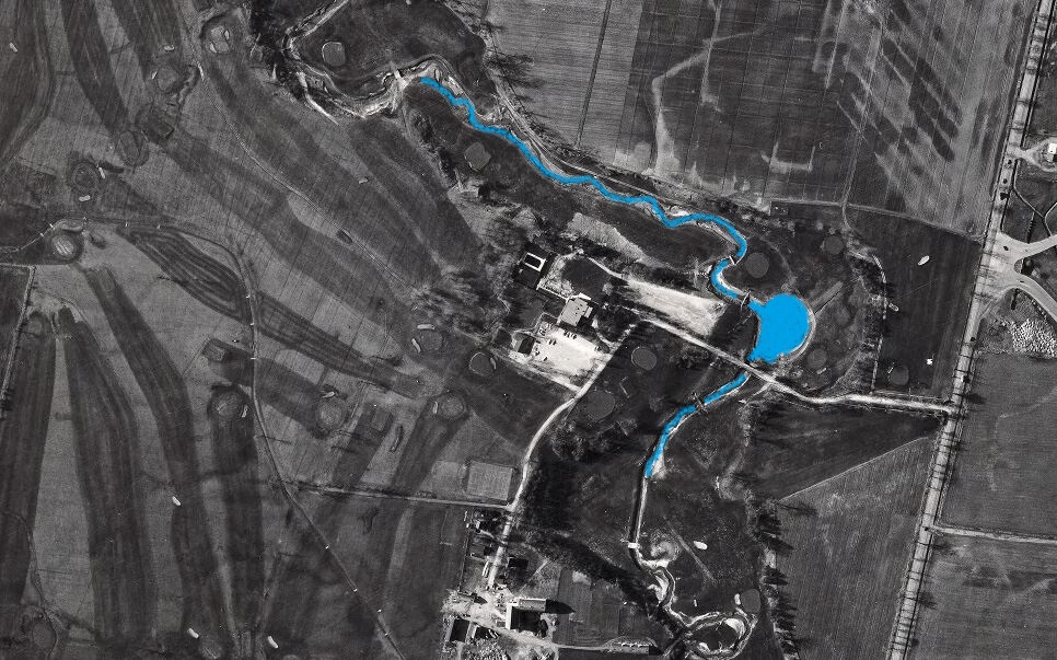 The park was developed on the grounds of the former Glen Shields Golf Course (1952-1979) where it ran along both sides of the Don River. The 1967 aerial photo below is from the Toronto Archives and shows the river and an earlier pond where Marita Payne Pond is today. The fairways and greens from the old golf course can still be seen in the picture. The table lands were developed for housing while the ravine areas were turned into Glen Shields Park and Marita Payne Park.