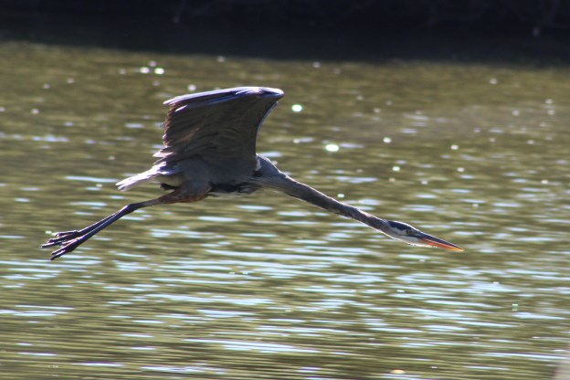 Great Blue Herons, on the other hand tend to live for around 17 years. With their wingspan of nearly two meters they are able to reach speeds of 55 kilometers per hour in flight. It’s common for them to nest in large colonies and then fly for up to an hour each day to reach their feeding places. There has been a Great Blue Heron at Marita Payne Pond for several years in a row and it’s likely the same one each year. Birds that have been banded for tracking purposes are known to migrate to the same place each winter and return to the same nesting grounds each spring. For some reason many of these birds moved farther north this spring and we seem to have a lot more of them in the GTA. The Great Blue Heron in the cover photo is a second one, the first time I have ever seen two at this little pond. It is flying with its neck stretched out straight unlike the normal retracted “S” curve we usually see when they’re in flight.