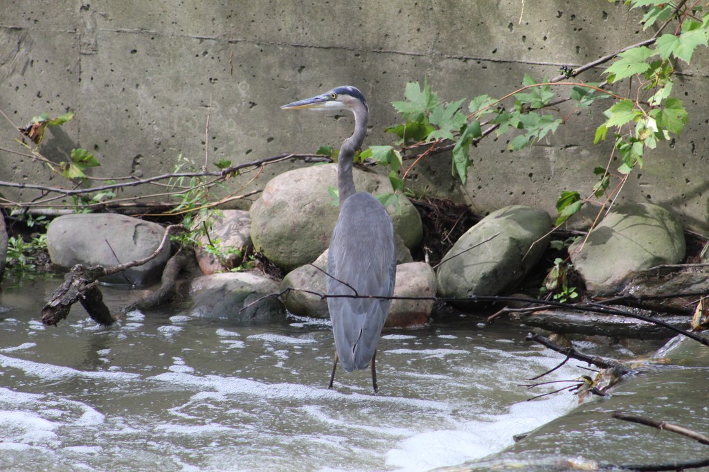 I was wondering if the second Heron at Marita Payne was possible the one that is usually at the old dam just past the 407 bridge. As it turns out, this bird is in its normal spot at the base of the abutment from the dam. There’s no shortage of Herons this year in any of our parks.