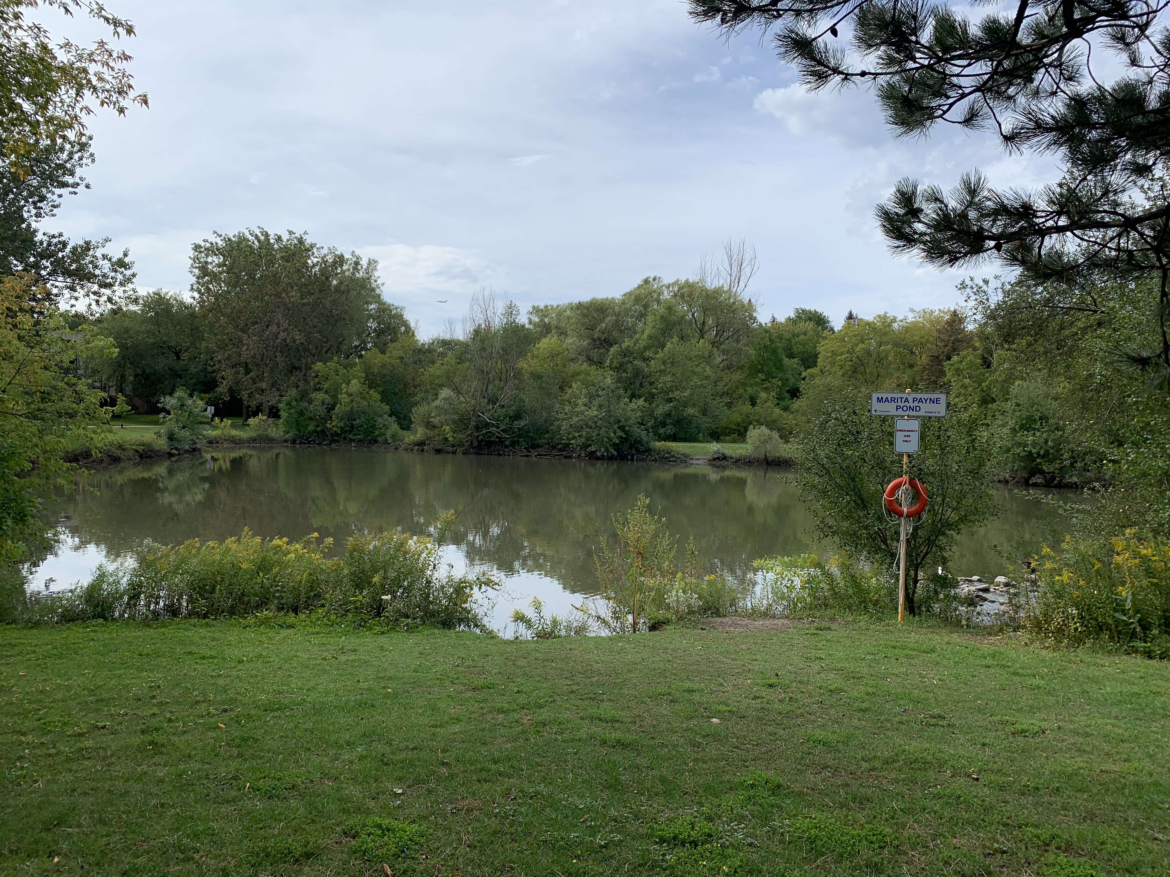 Marita Payne Pond is in a small residential park that follows the Don River through the Dufferin Road and Steeles Avenue area. The pond, and the park it is located in are named after Marita Payne who is a Vaughan resident. She is remembered for winning two silver medals in the 1984 Summer Olympics in Los Angeles. She is also currently a co-holder of the Canadian record for the 400-metre dash.