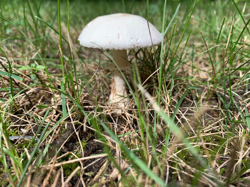 Destroying Angel is one of the poisonous mushrooms that grow in the region. They are often found growing solo and can be identified by their bright white colour and the large veil below the cap. A distinguishing feature is the sac-like cup at the bottom of the stem.