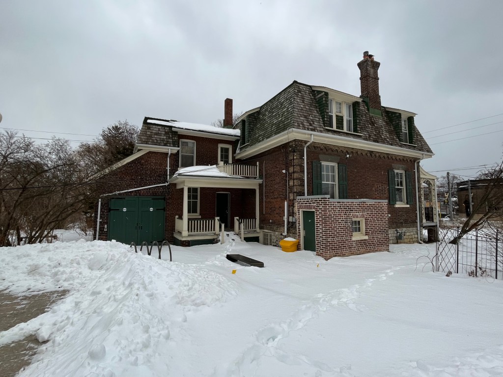 Another addition to the house was completed in 1920 on the north side of the building. This section lacks the patterned brickwork and has no quoins on the corners and no shutters on the windows. It’s also made of darker bricks but is hidden from the street.