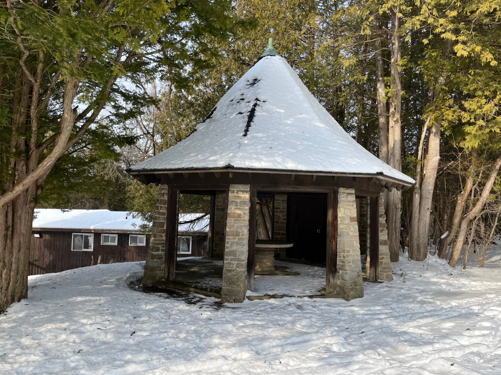 One of the trails through the property follows the Schomberg and Aurora Railway right of way. This 36-kilometer long railway was built in 1902 and connected Schomberg with the Toronto and York Radial Railway which ran up Yonge Street. This is how Henry Pellatt introduced the Eatons to the property as the Eversley train station was just opposite where the Eaton Hall gatehouse and driveway would be built. Pellatt also built a spur line on the boundary between lots 11 and 12 to service his estate at Mary Lake. The Schomberg and Aurora Railway closed in 1927 and the tracks were removed the following year.