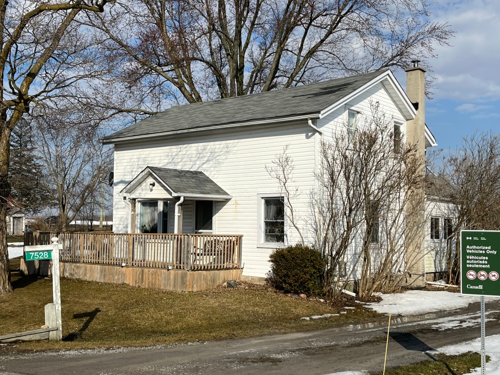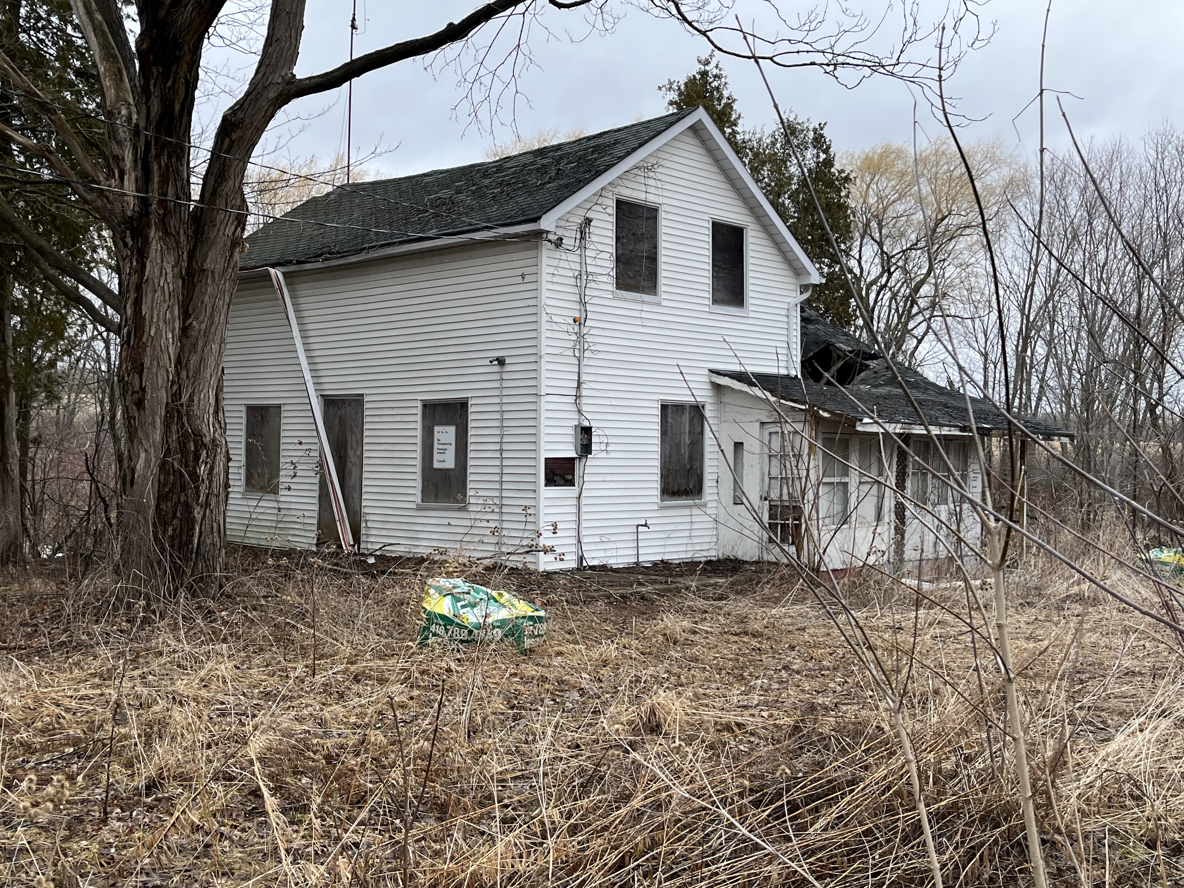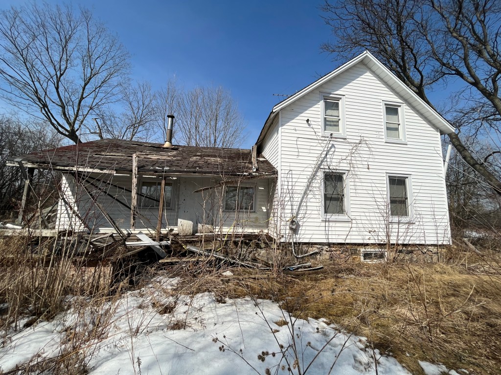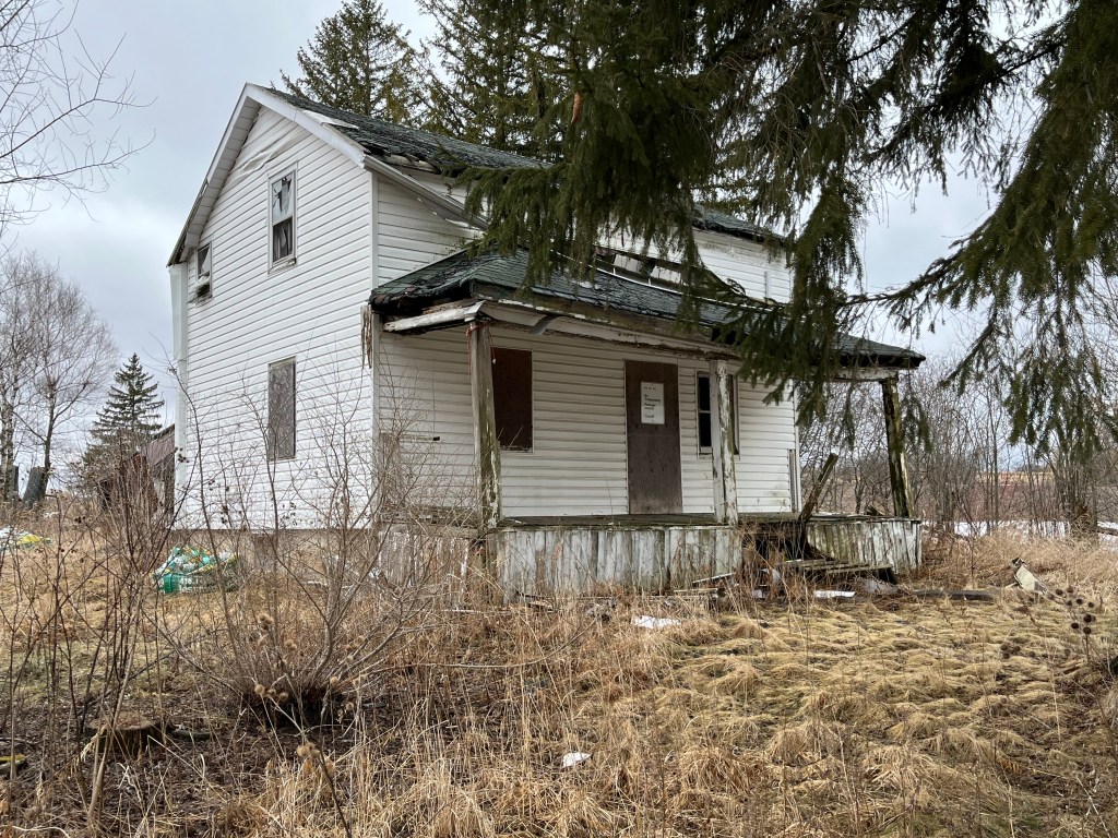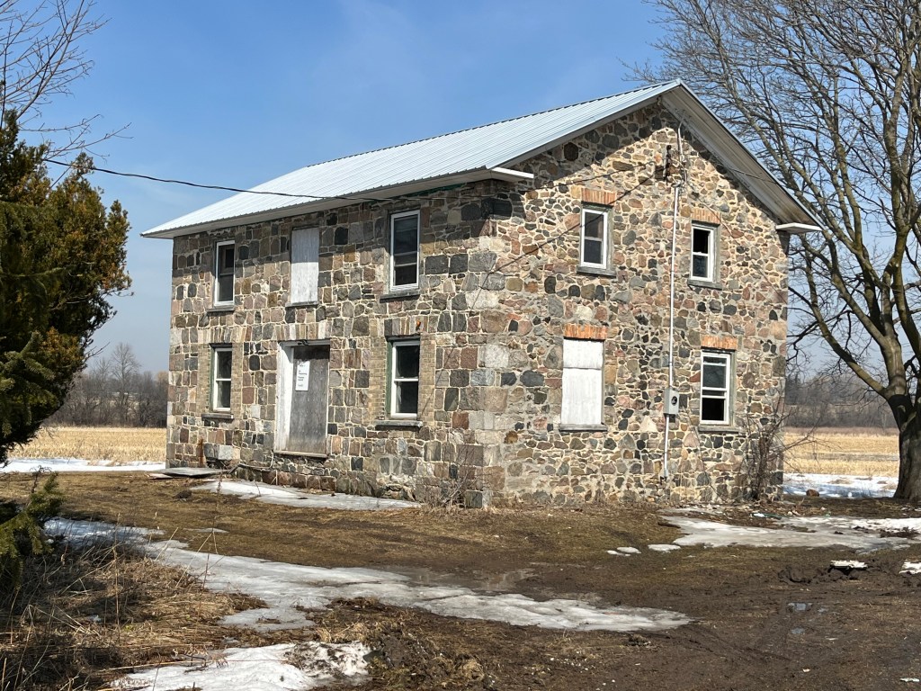 The James Collins house was built in 1850 and was also subjected to white siding which likely hides a lovely brick or stone home on its stone foundation. The entire back side of this house is missing the roof and it won’t be long before this heritage designated home is lost forever.