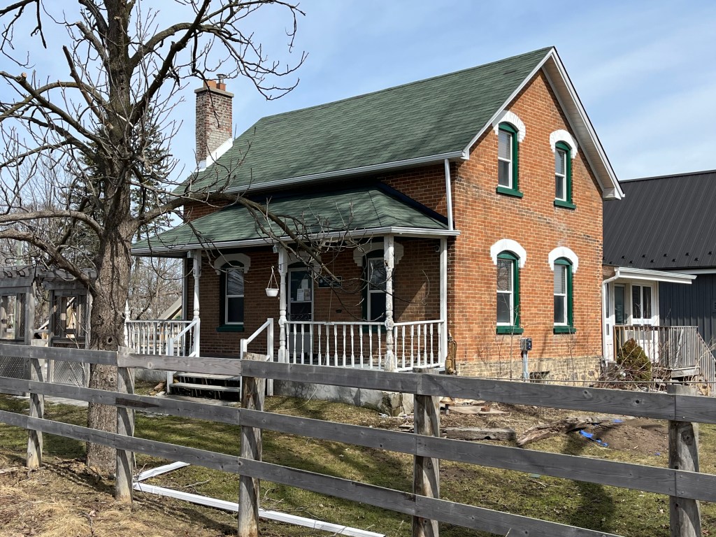 In 1851 Robertson built his family home in a grand style. While many of Ontario’s farmers in this era were building small homes, this one was a sprawling mansion by comparison. The house faces the lake and featured a trio of gables on the south elevation which each has extensive gingerbread bargeboards. Each second floor window features a triangular section on the top which is outlined by the brick pattern. This is neither the rounded arch favoured by the Italianate (1840-1890) or the pointed arch of Gothic Revival (1830-1890) architecture, but something less common.