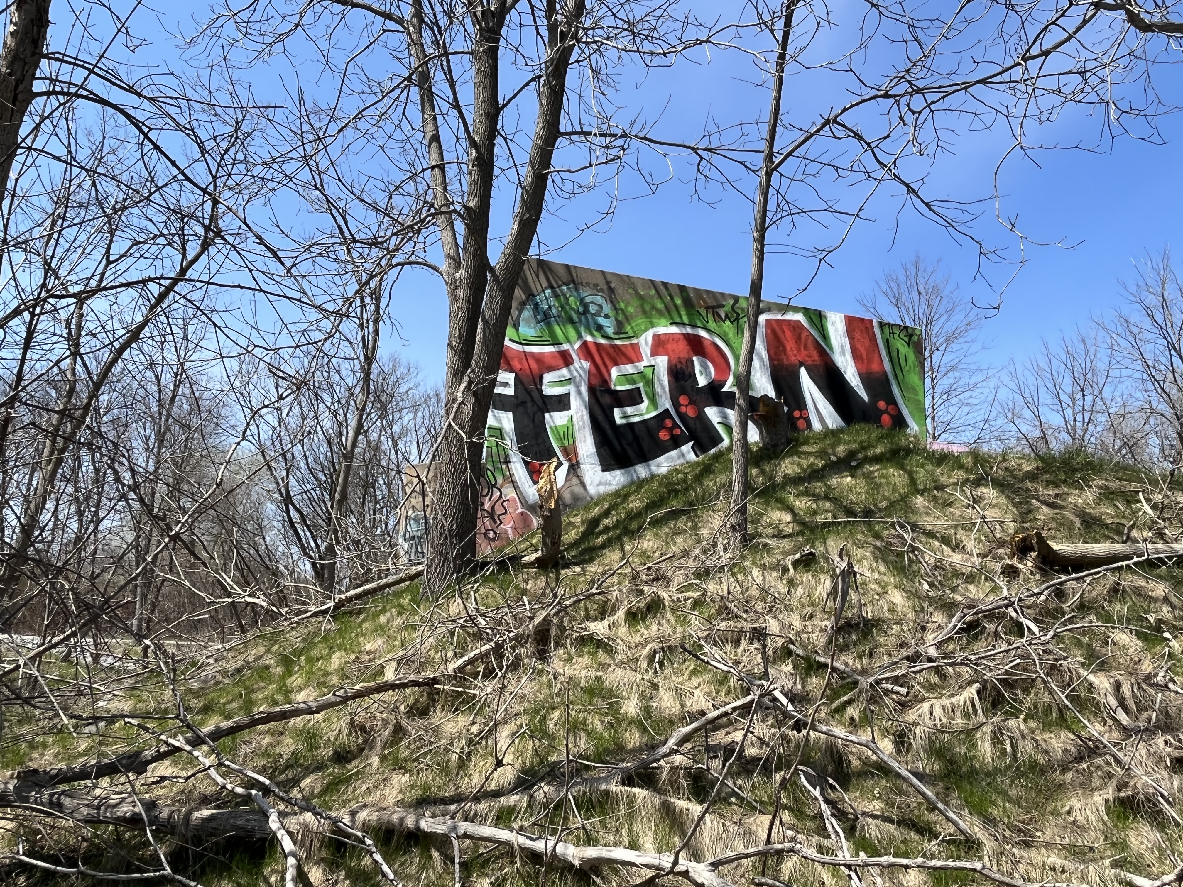 There’s not much to see from this end and looking across the creek there’s no indication of the location of the other abutment as it was removed to put the trail through. Graffiti artists have been at work on the remaining concrete and it has been painted on almost every surface.
